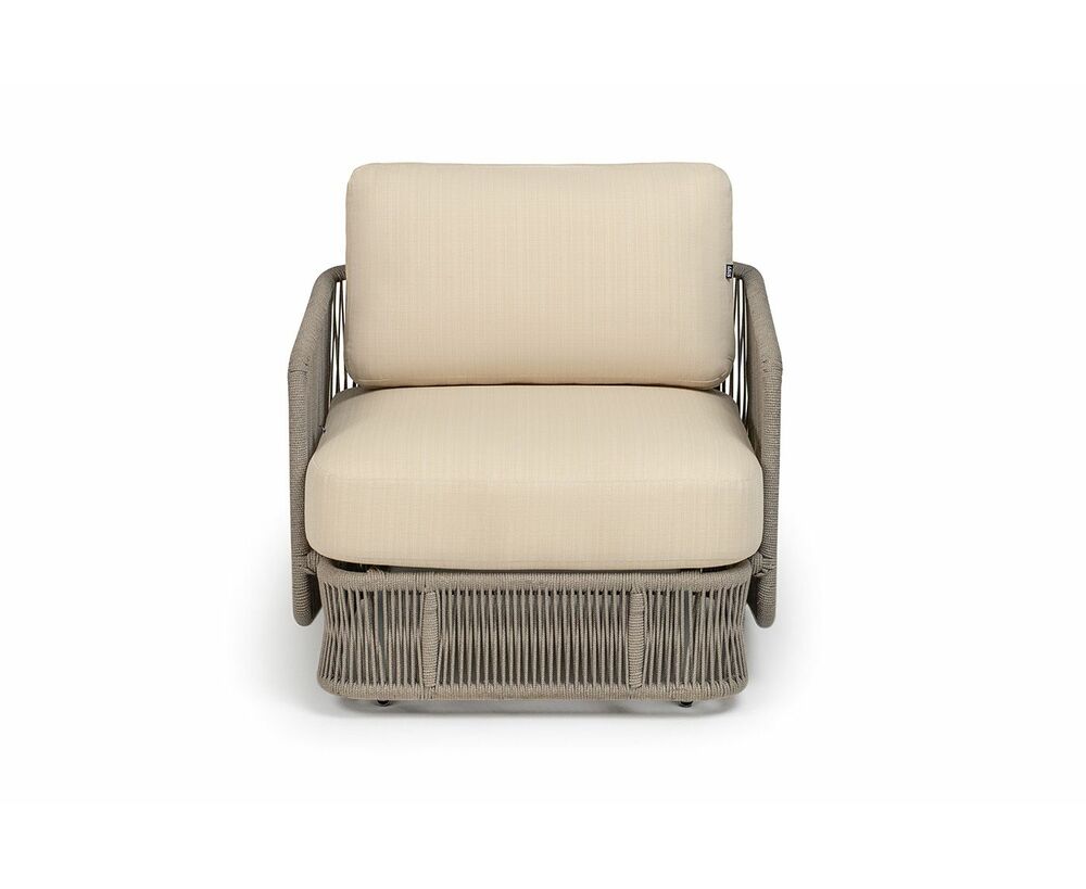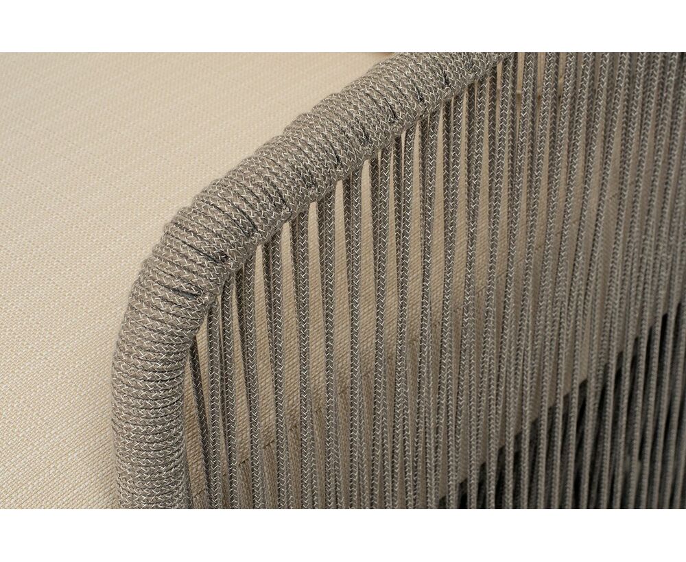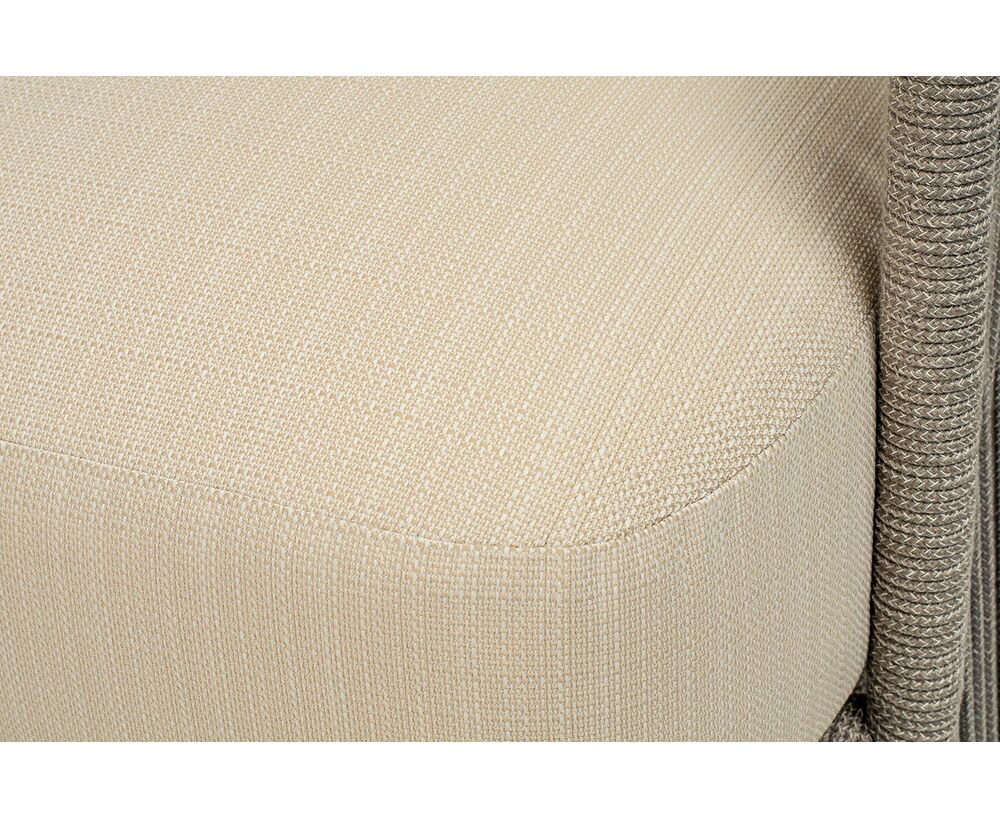 "Альбано" кресло плетеное из роупа, каркас алюминий светло-серый (RAL7035) муар, роуп серый меланж круглый, ткань Mossle светло-бежевая