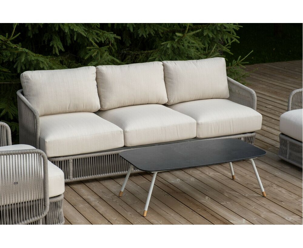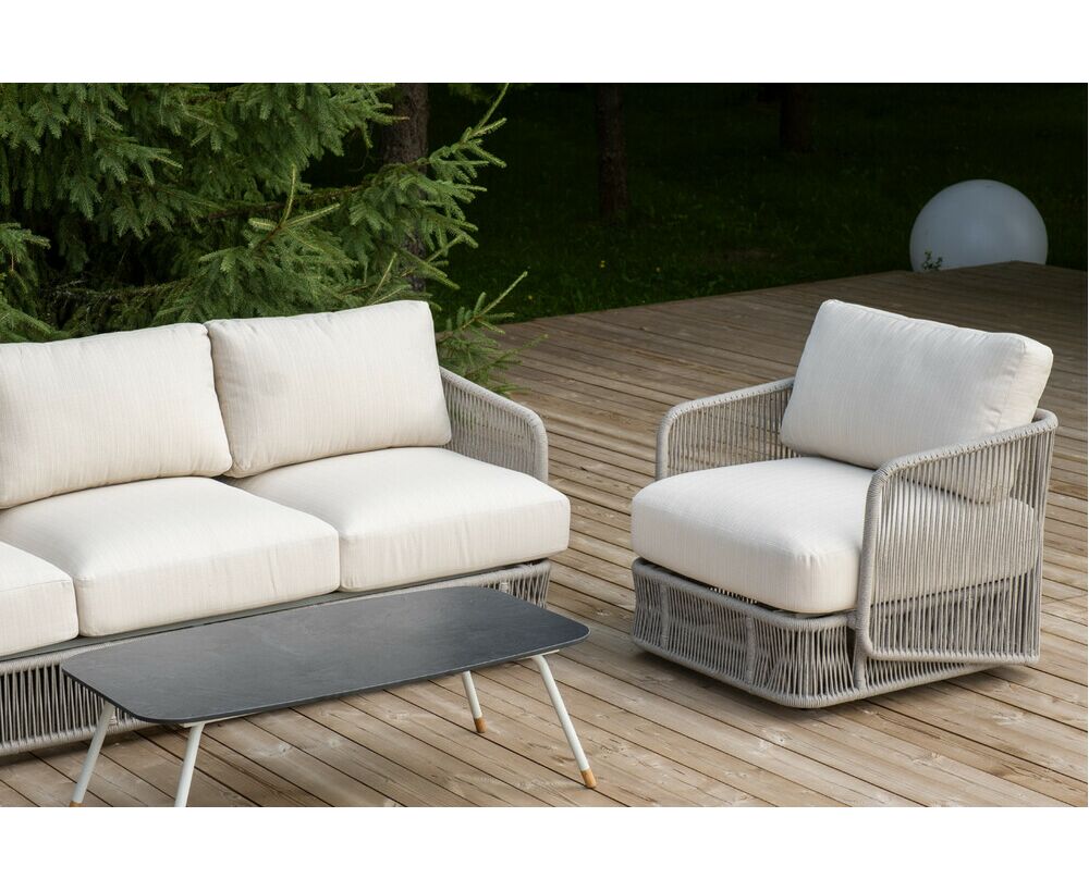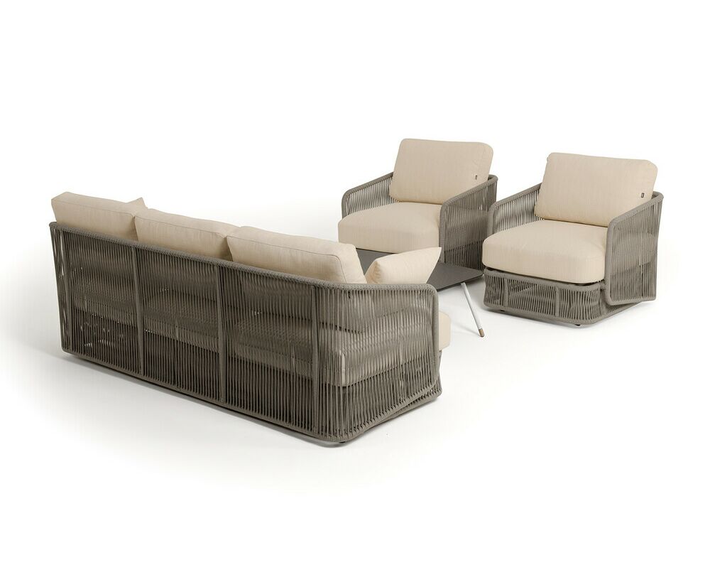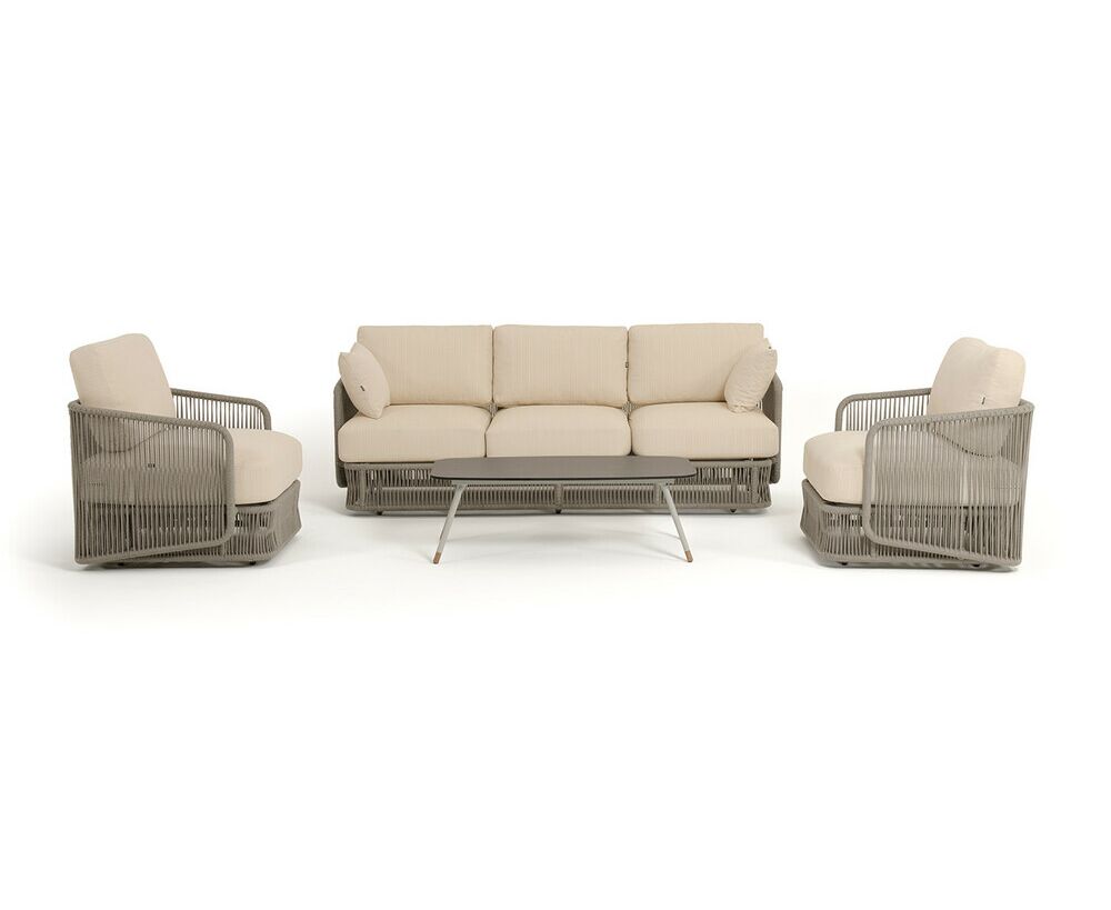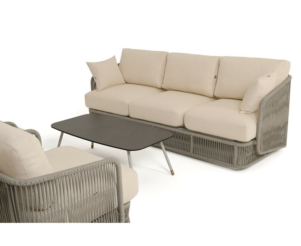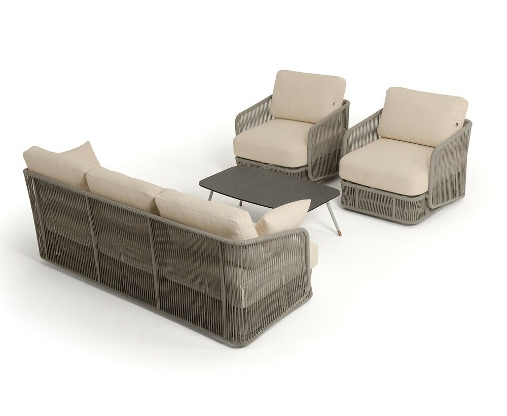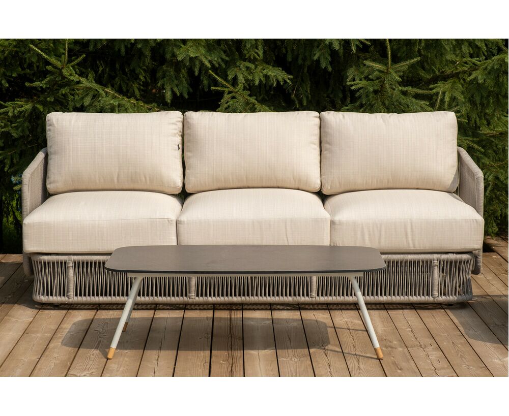 "Альбано" диван 3-местный плетеный из роупа, каркас алюминий светло-серый (RAL7035) муар, роуп серый меланж круглый, ткань Mossle светло-бежевая 1шт. 2 320Х865Х780, "Альбано" кресло плетеное из роупа, каркас алюминий светло-серый (RAL7035) муар, роуп серый меланж круглый, ткань Mossle светло-бежевая 2шт. 920Х865Х750, "Верона" журнальный стол из HPL 120х65, H40, каркас светло-серый (RA L7035) муар, цвет столешницы "серый гранит" 1шт. 1 200Х650Х400,