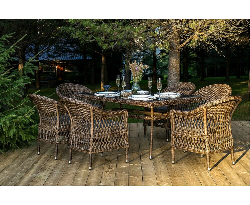 "Амароне" обеденная группа из искусственного ротанга на 6 персоны, цвет коричневый