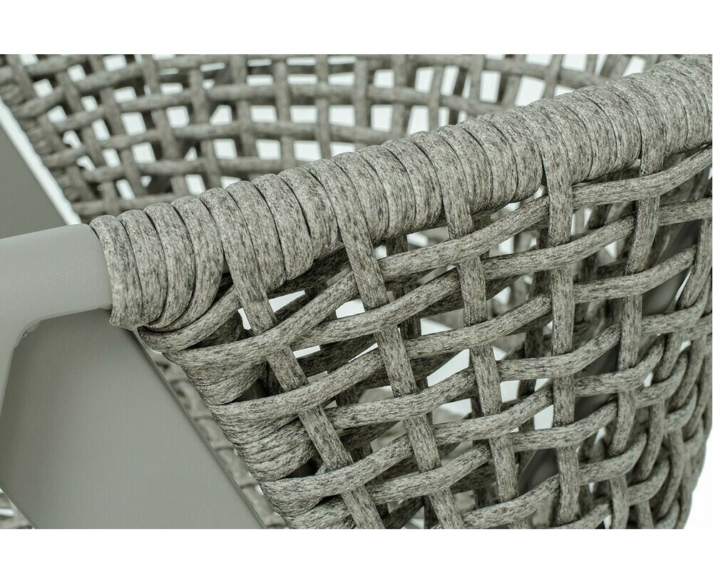 "Амстердам" стул плетеный из роупа, каркас алюминий, роуп серый круглый, ткань бежевая