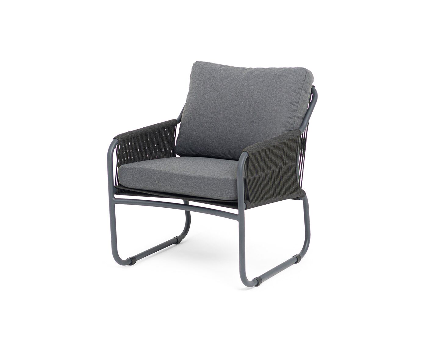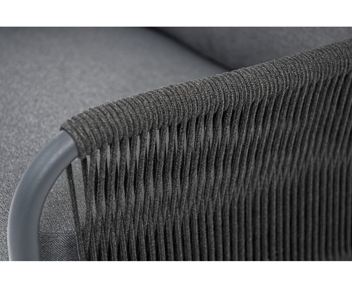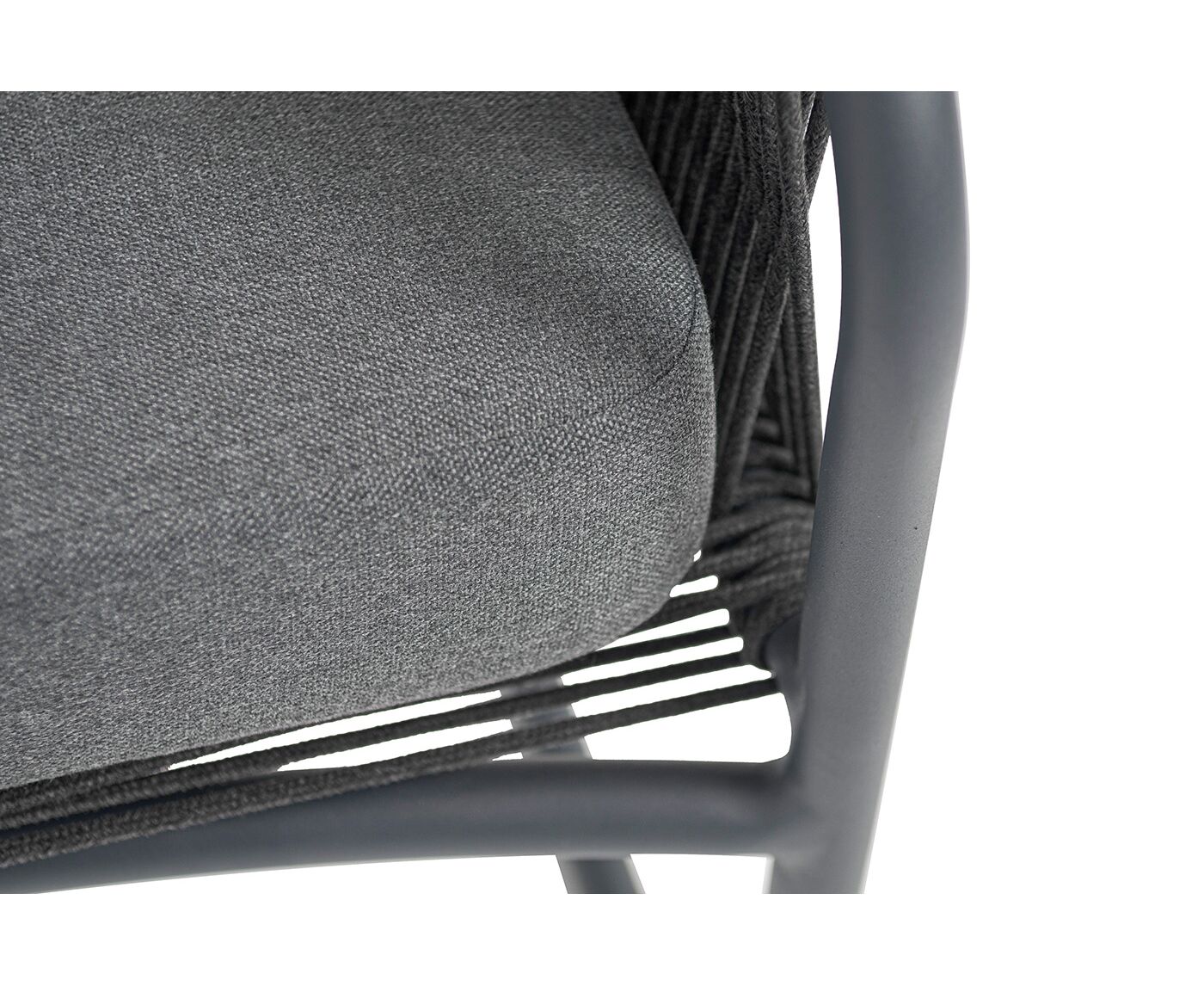 "Ането" кресло плетеное из роупа, каркас алюминий темно-серый (RAL7024) муар, роуп темно-серый круглый, ткань темно-серая 027