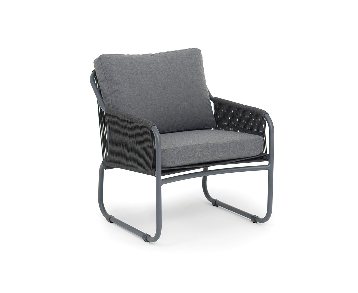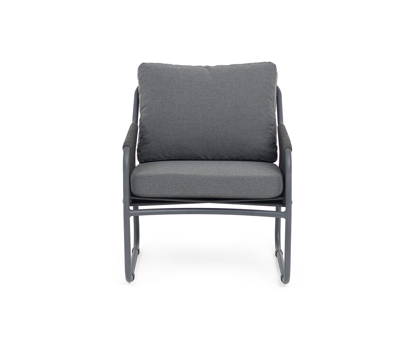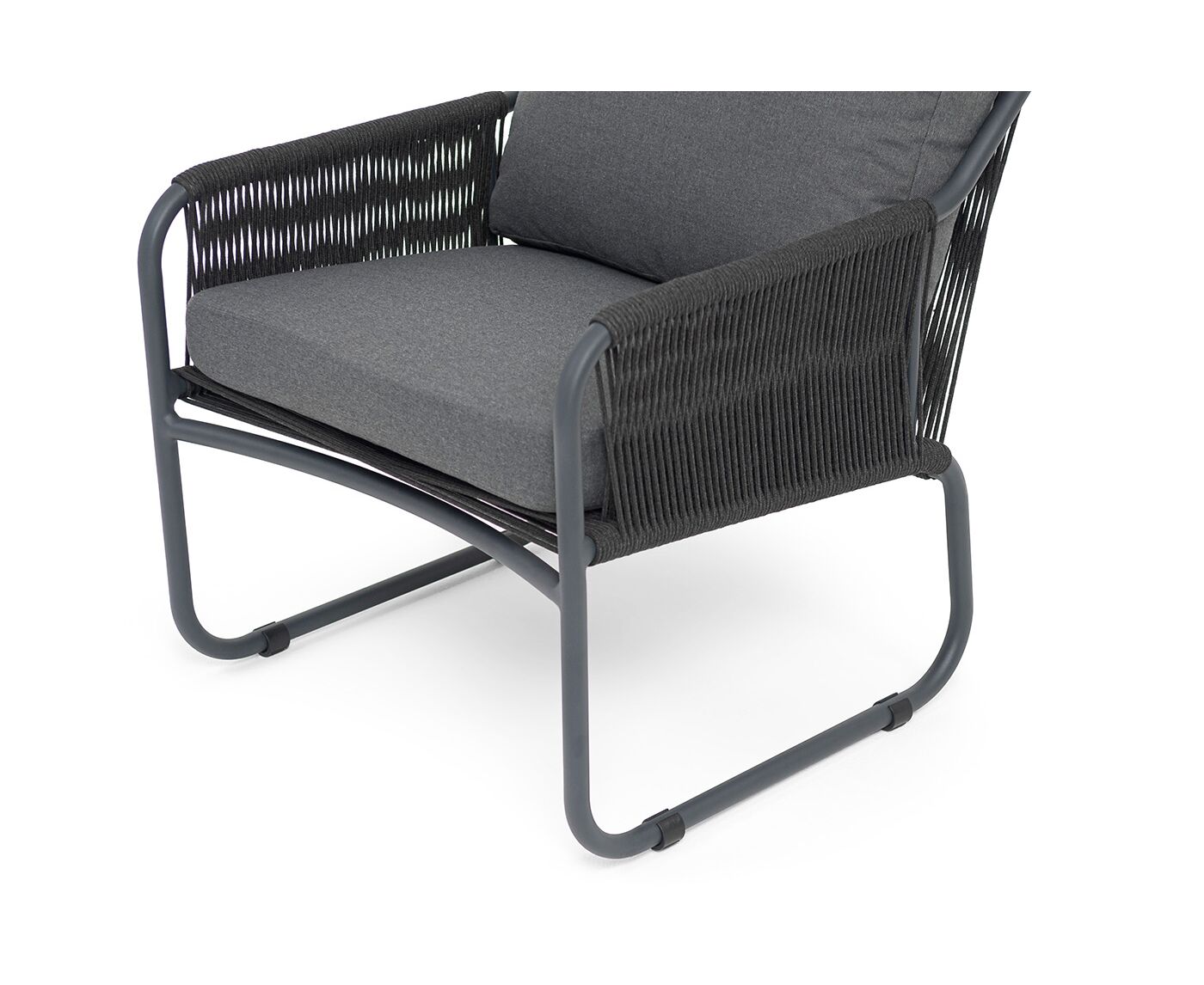 "Ането" кресло плетеное из роупа, каркас алюминий темно-серый (RAL7024) муар, роуп темно-серый круглый, ткань темно-серая 027