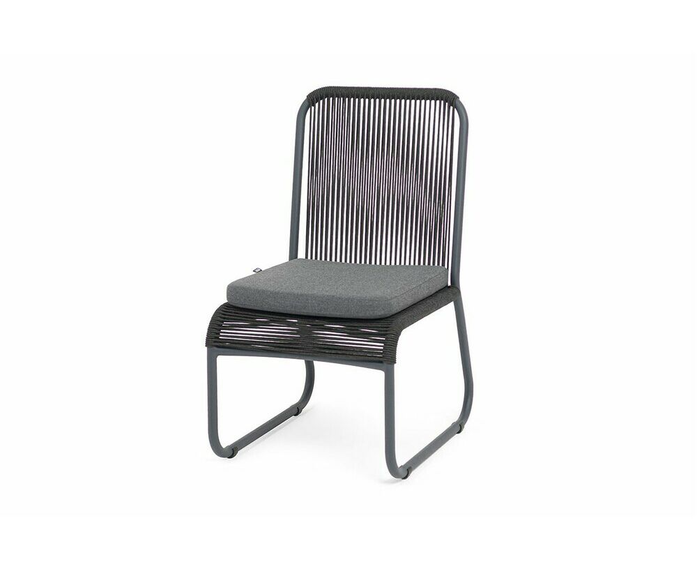 "Ането" стул плетеный из роупа, каркас алюминий темно-серый (RAL7024) муар, роуп темно-серый круглый, ткань темно-серая 027