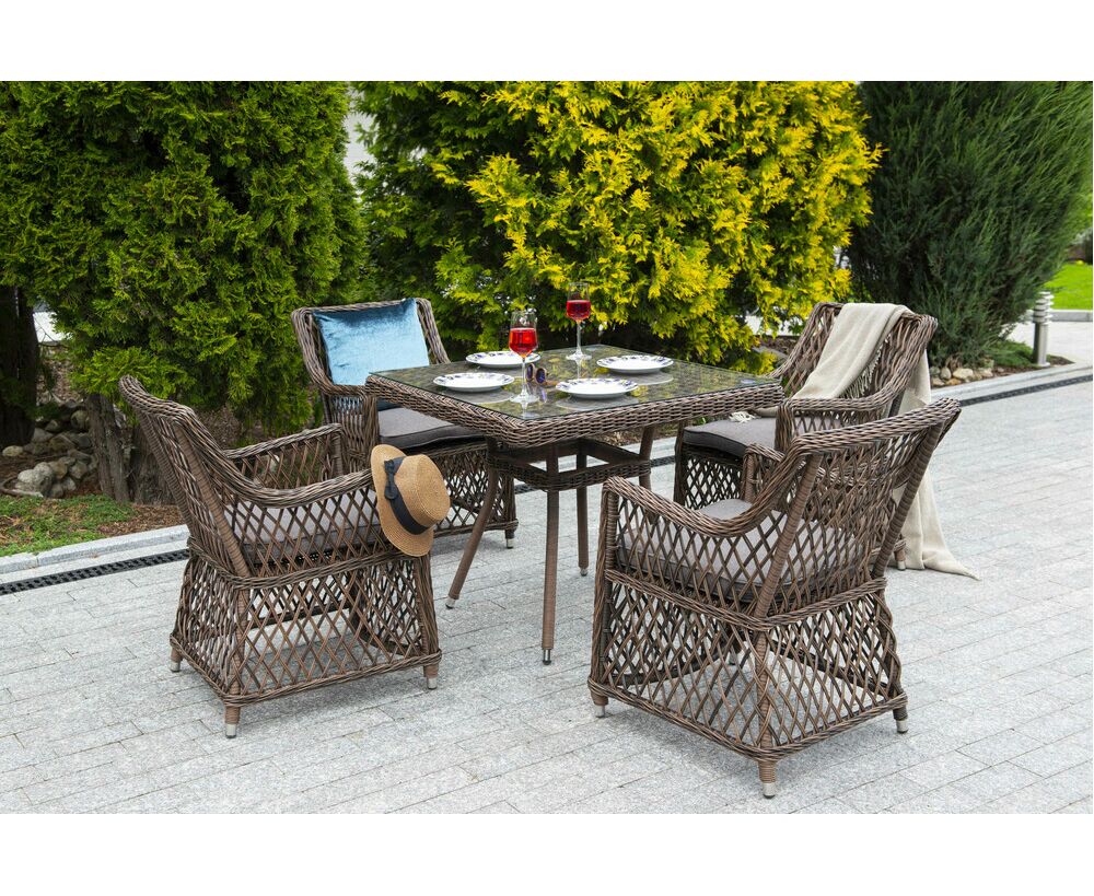 Плетеный квадратный столик "Айриш" изготовлен из легкого, но устойчивого к деформациям алюминия, вручную оплетенного искусственным ротангом насыщенного шоколадного оттенка.