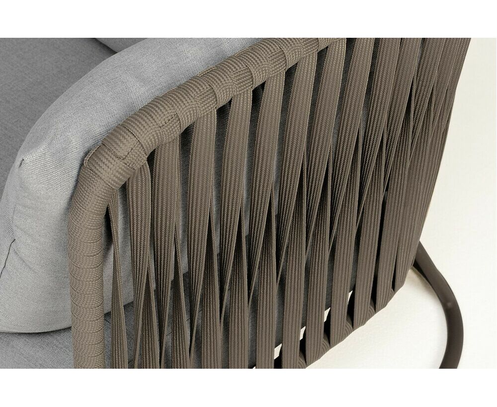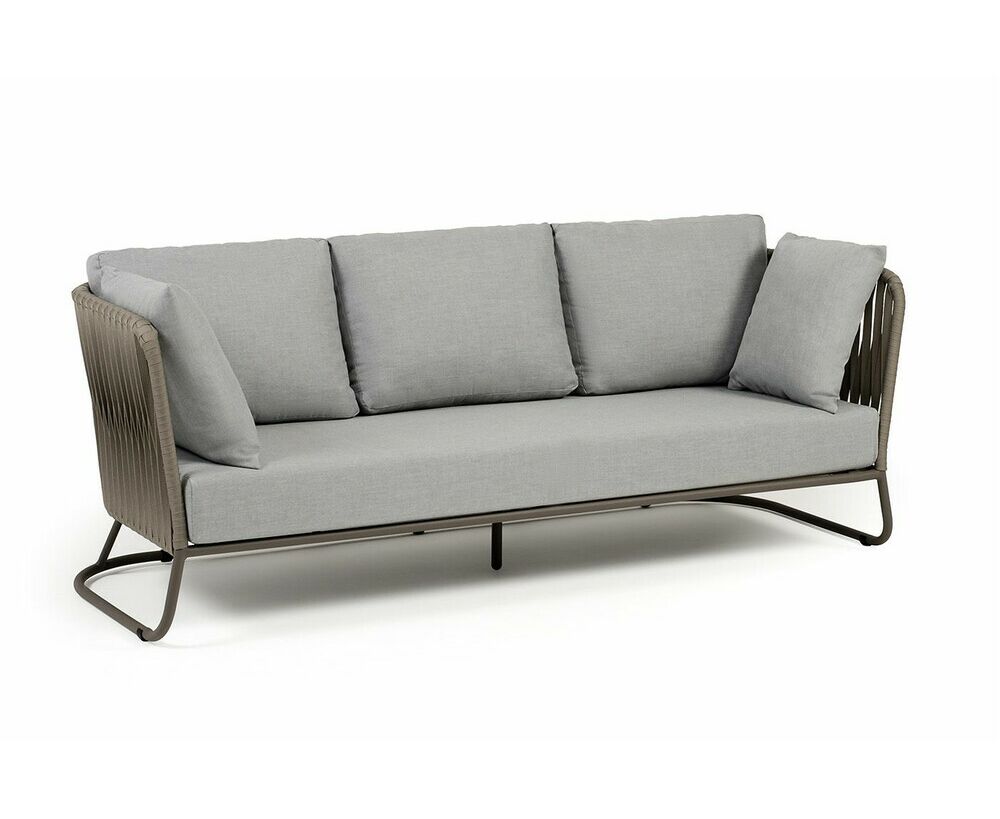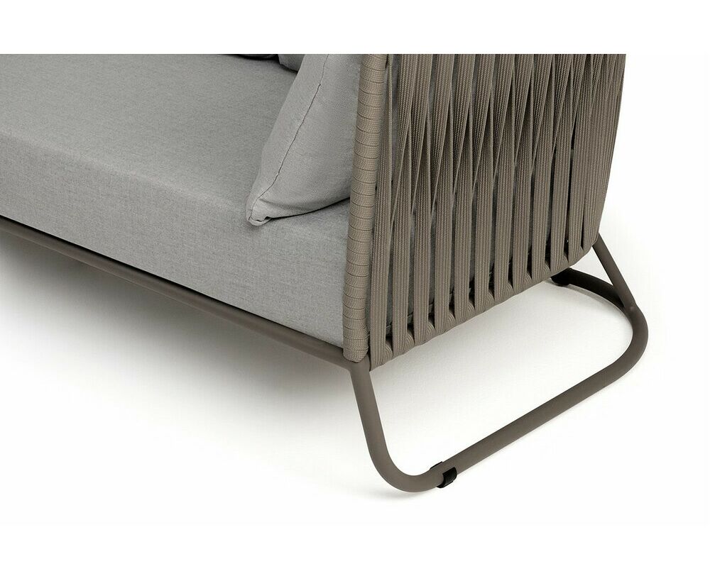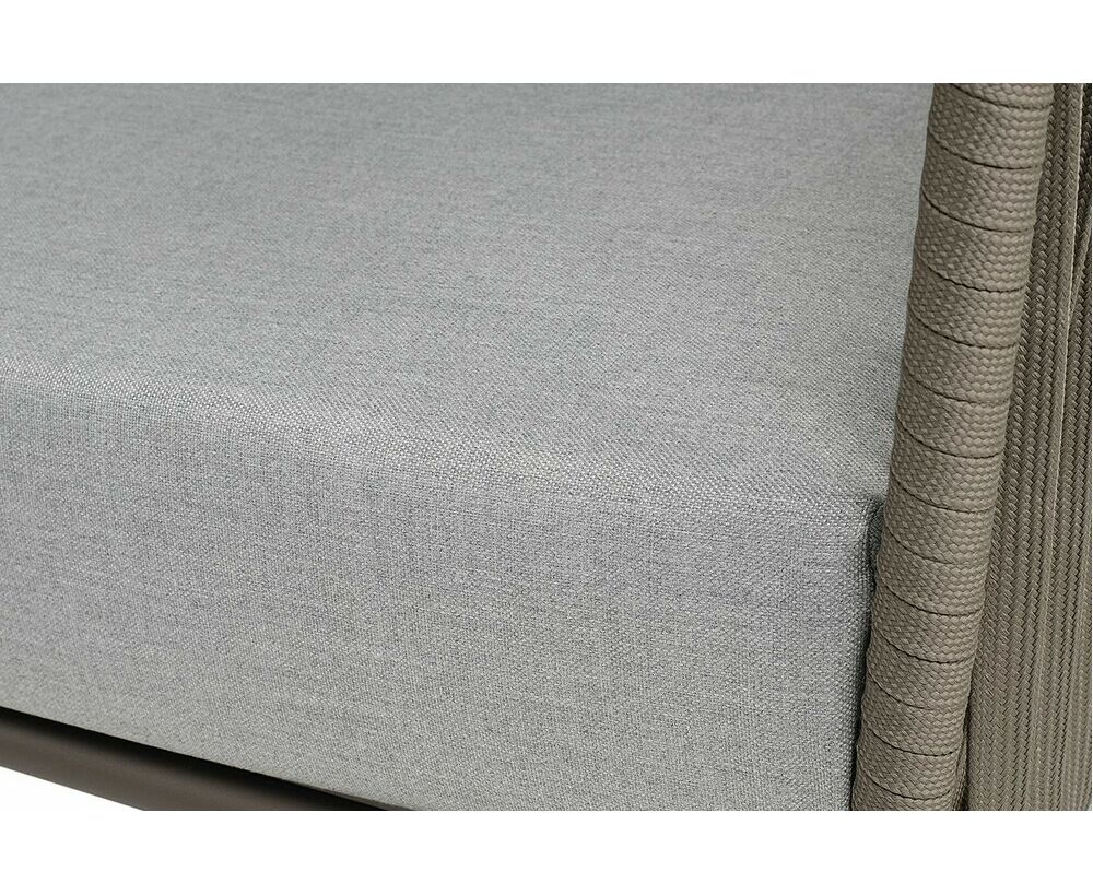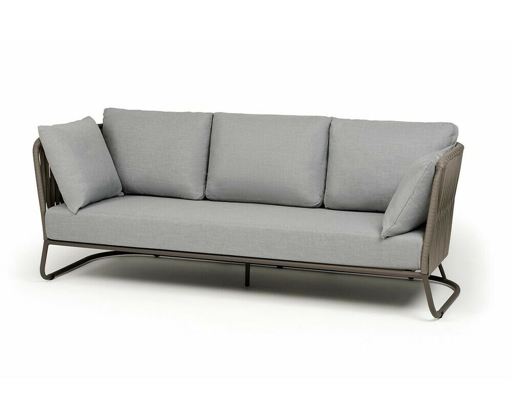 "Багамы" диван 3-местный плетеный из роупа, каркас алюминий бежево-серый (RAL7006) муар, роуп серо-коричневый 23мм, ткань светло-серая