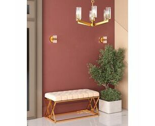 Банкетка ИНСИГНИЯ велюр бежевый сталь золото