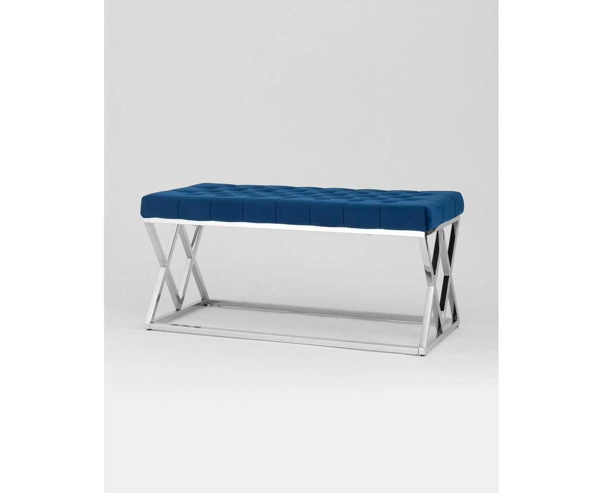 Банкетка ИНСИГНИЯ велюр синий сталь серебро