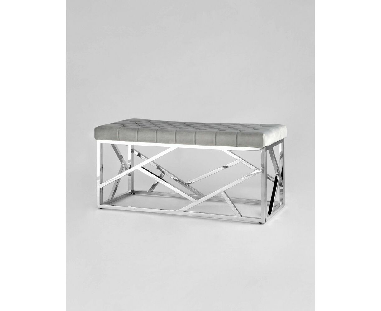 Банкетка-скамейка АРТ ДЕКО велюр серый сталь серебро