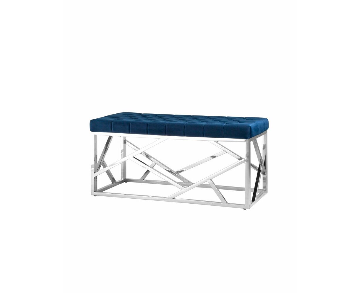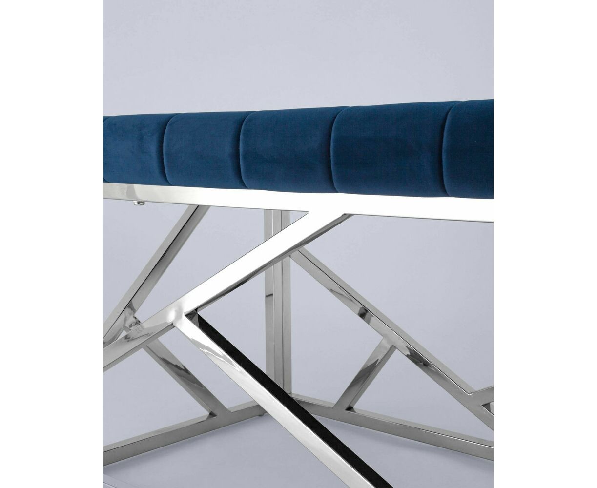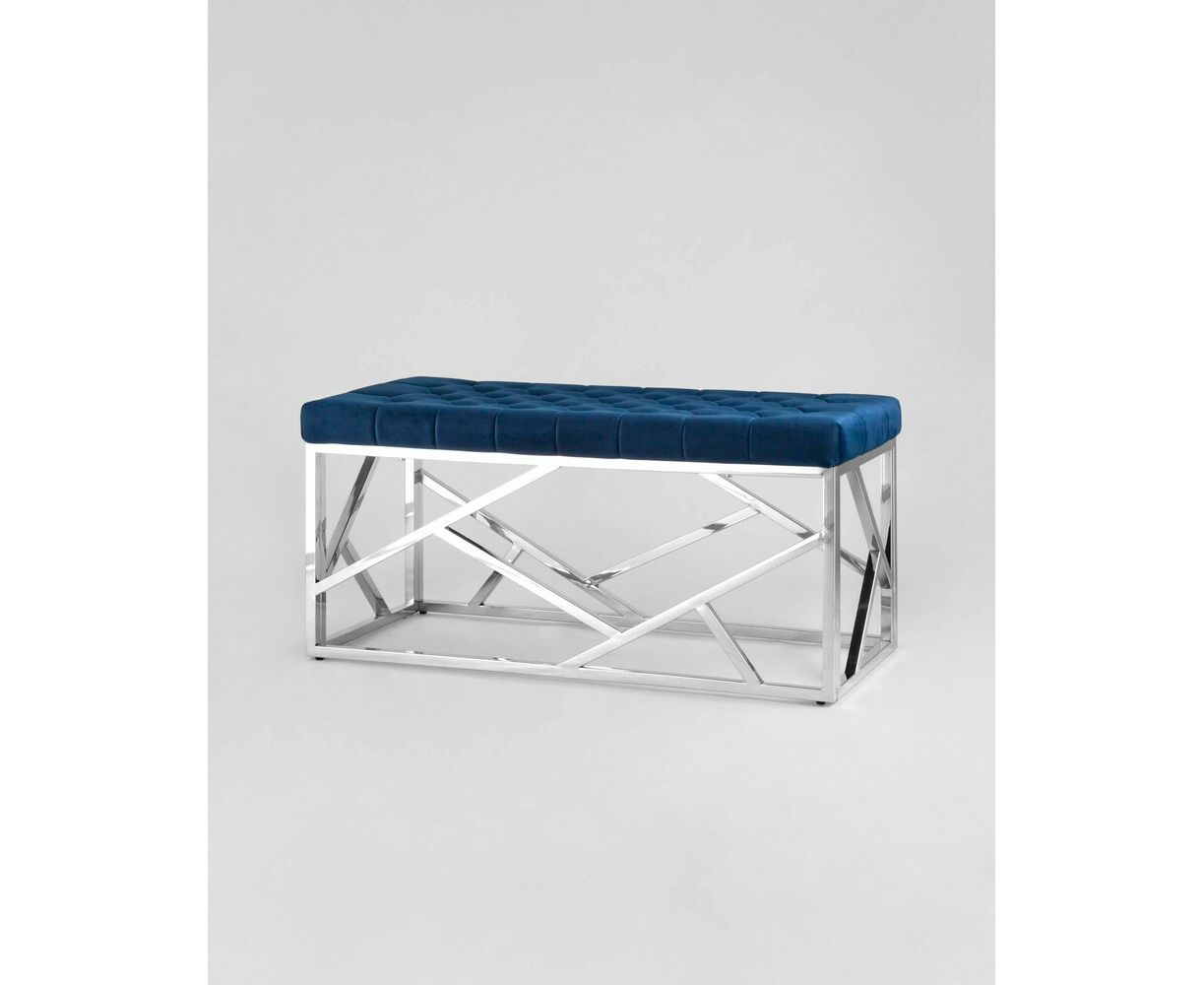 Банкетка-скамейка АРТ ДЕКО велюр синий сталь серебро