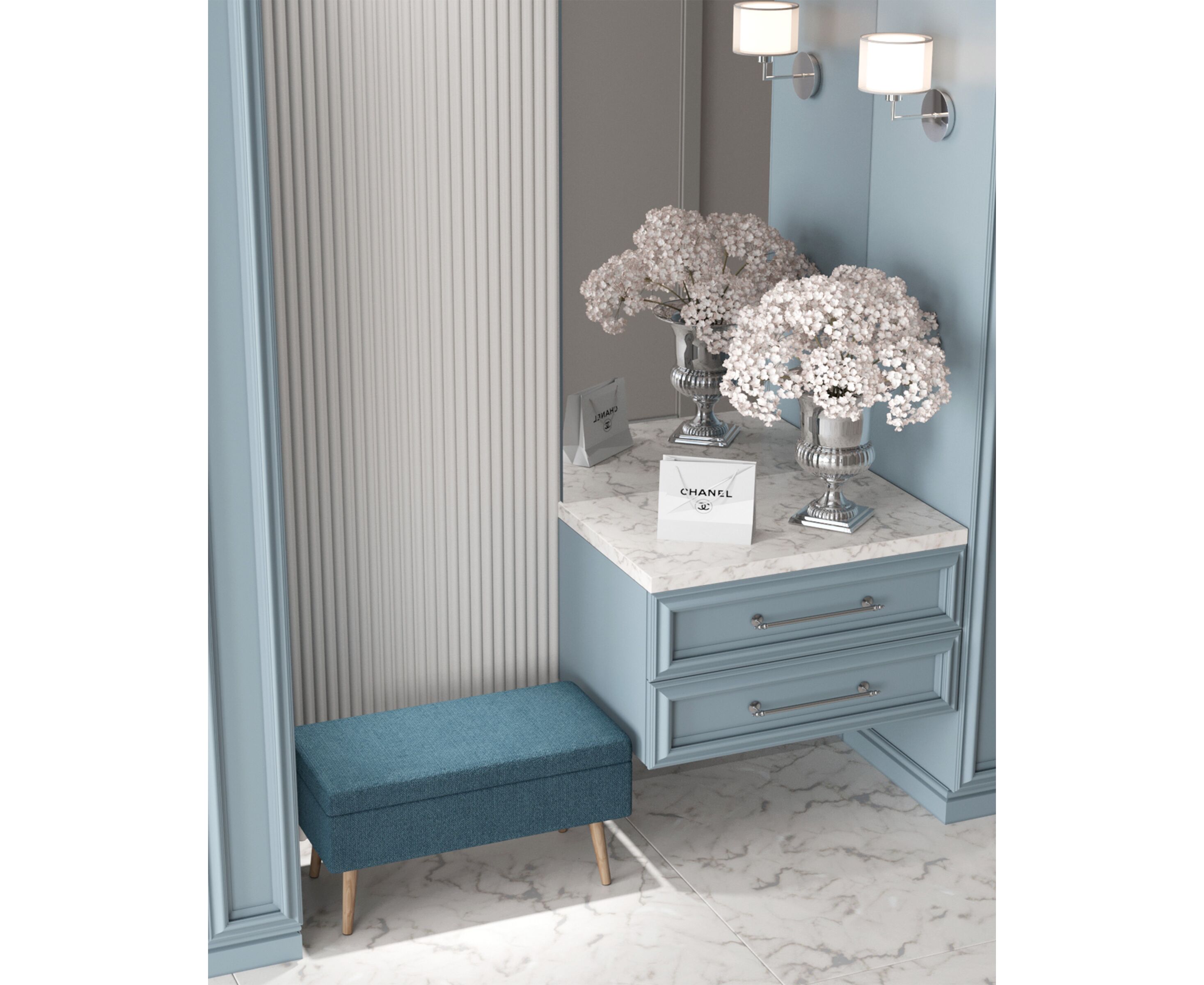 Банкетка Сторми с ящиком темно-синий