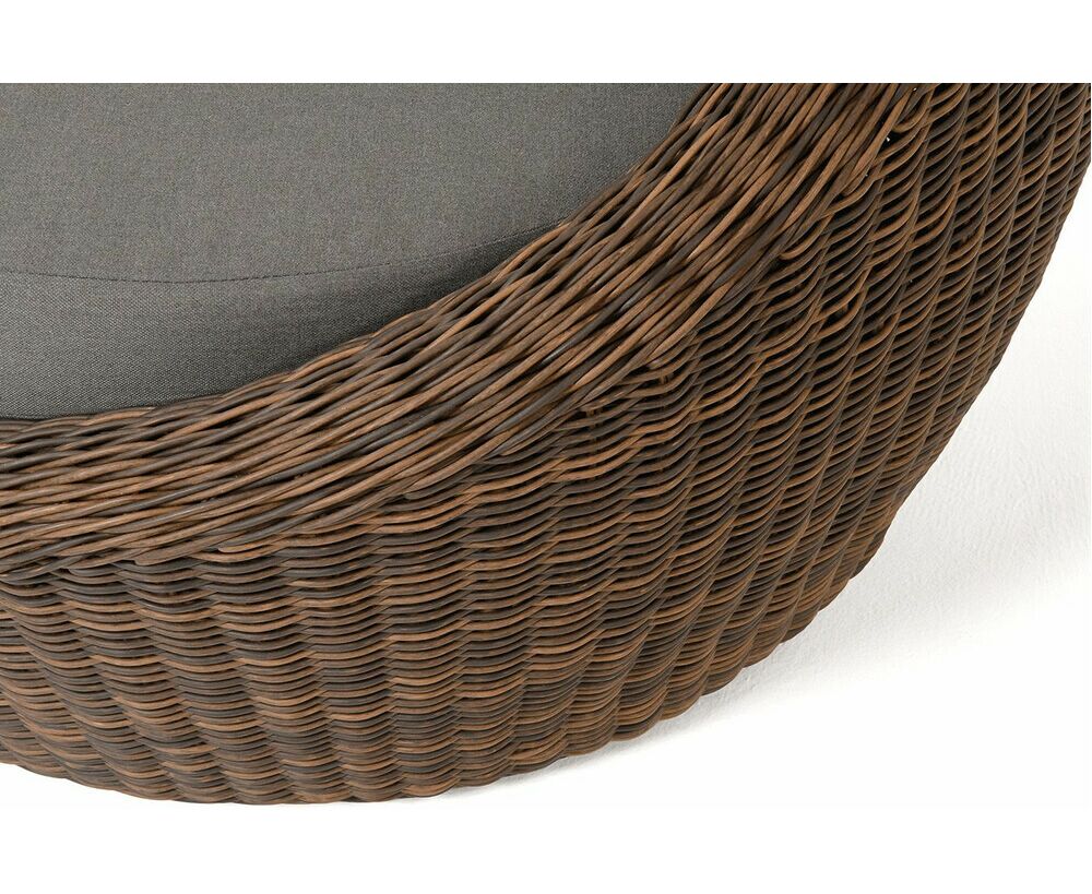 Надежность и износостойкость мебели гарантирует каркас, который сделан из качественного алюминия. Ее дополняет ручное плетение, при изготовлении которого используется искусственный ротанг. Представлена модель в коричневом цвете.
