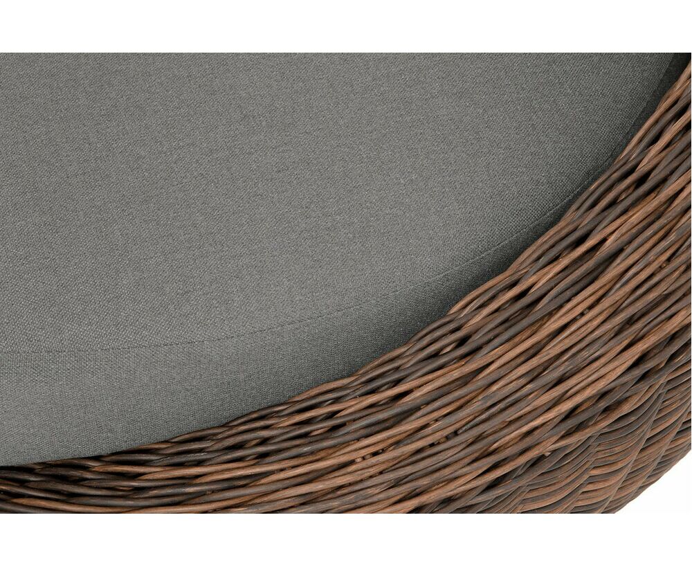 В комплекте с уличным ротанговым креслом идут мягкие подушки со съёмными чехлами серо-коричневого оттенка. Они пошиты из полиэстера, который не боится повышенной влажности благодаря наличию влагоотталкивающей пропитки. Плотность ткани составляет 230гр/м2.
