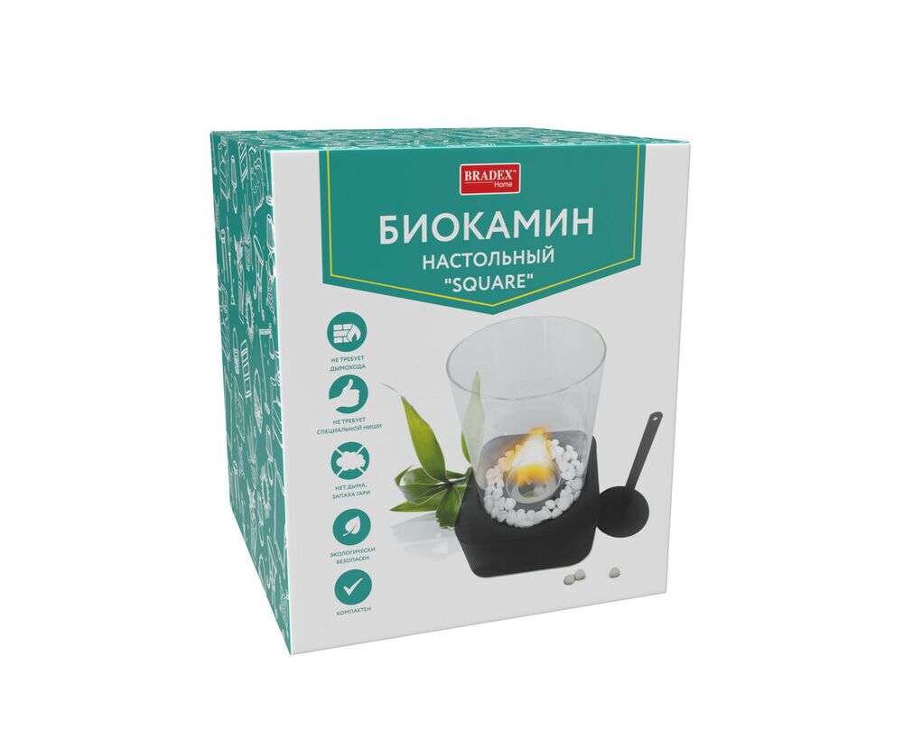 Биокамин настольный "SQUARE", 17x17x25,5 см, из металла, стекла