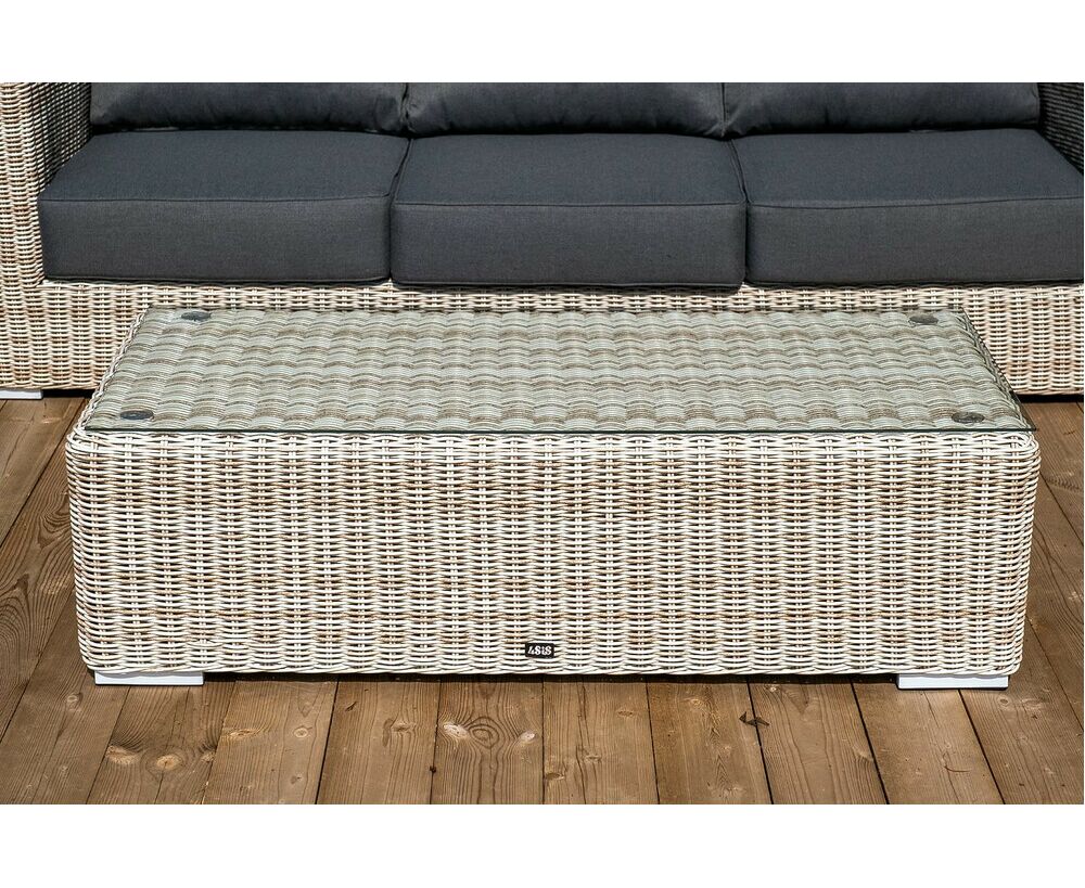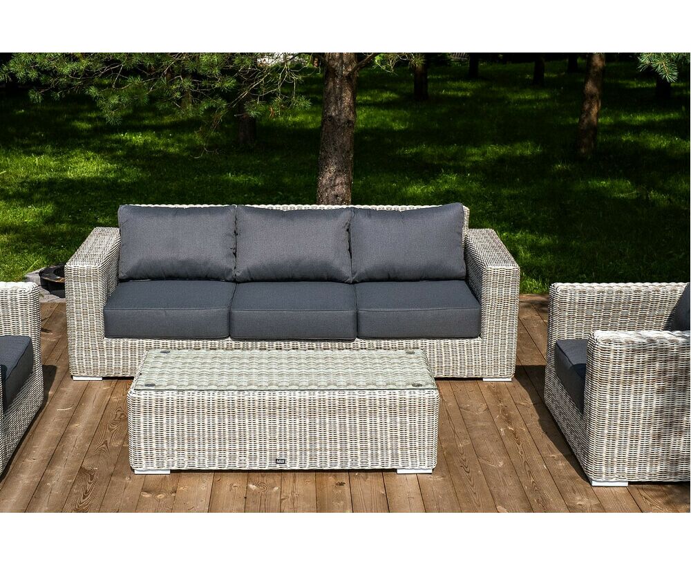 Поверхность плетеного столика представляет столешница из закаленного стекла – 5 мм. "Боно" диван из искусственного ротанга трехместный, цвет бежевый 1шт. 2 300Х900Х775, "Боно" кресло из искусственного ротанга, цвет бежевый 2шт. 1 020Х930Х800, "Боно" журнальный столик из искусственного ротанга, цвет бежевый 1шт. 1 300Х600Х400,