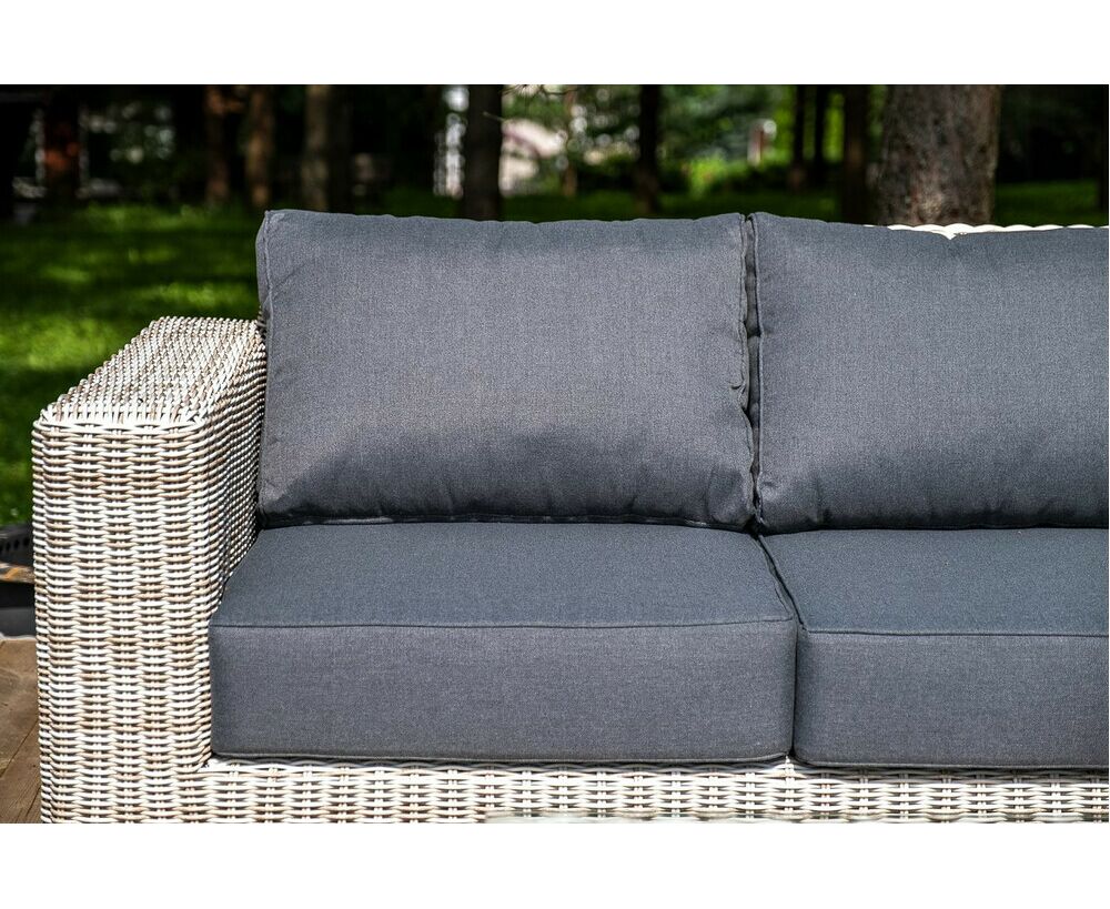 На креслах и диване предусмотрены мягкие подушки, съёмные чехлы которых пошиты из полиэстера, плотностью 300гр/м2. Ткань в обязательном порядке пропитывается влагоотталкивающими составами.