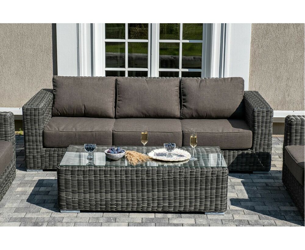 Поверхность плетеного столика представляет столешница из закаленного стекла – 5 мм. "Боно" диван из искусственного ротанга трехместный, цвет графит 1шт. 2 300Х900Х775, "Боно" журнальный столик из искусственного ротанга, цвет графит 1шт. 1 300Х600Х400, "Боно" кресло из искусственного ротанга, цвет графит 2шт. 1 000Х900Х775,
