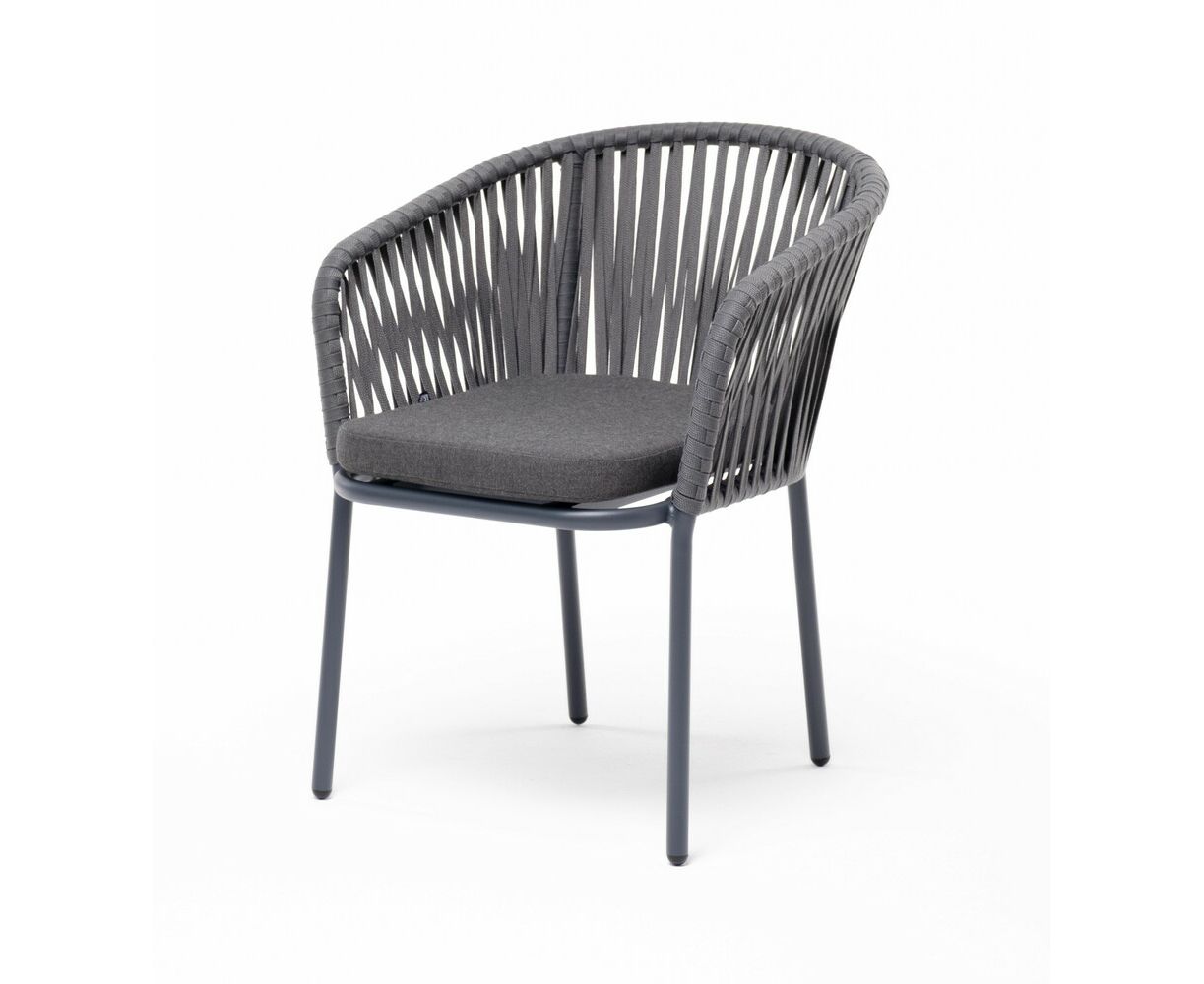 "Бордо" стул плетеный из роупа, каркас алюминий серый (RAL7022) муар, роуп серый 15мм, ткань темно-серая 027