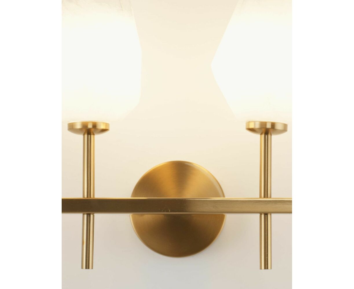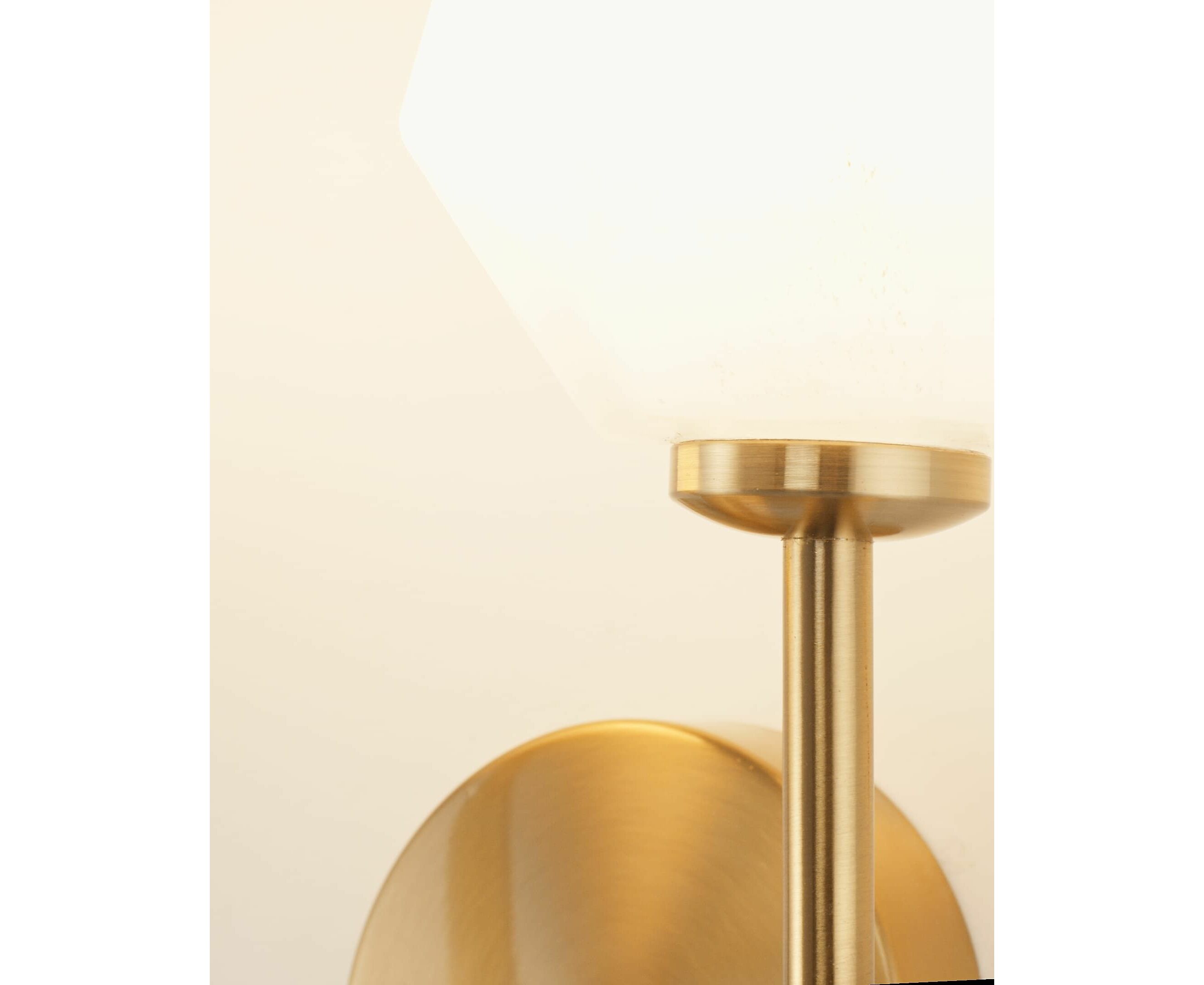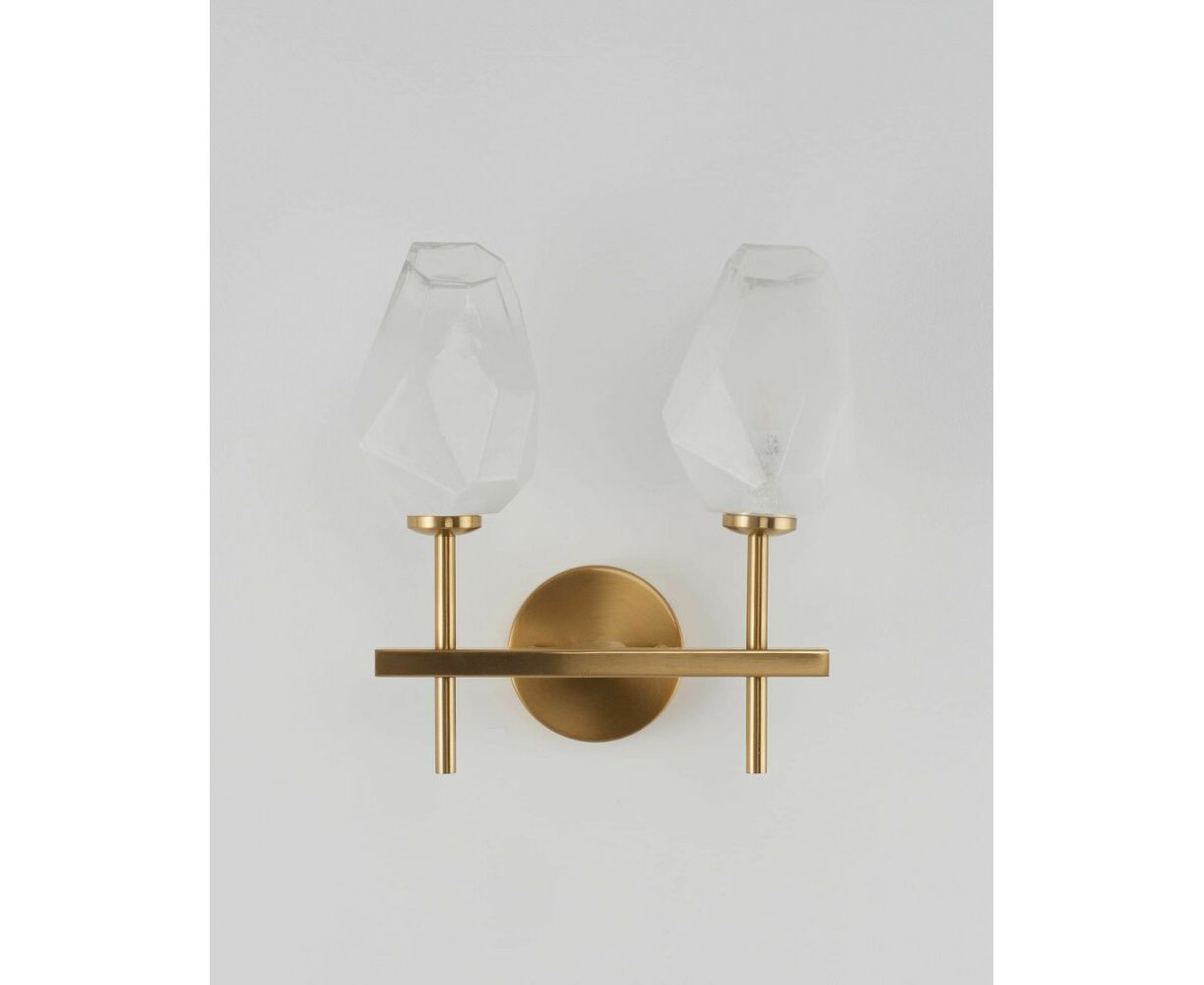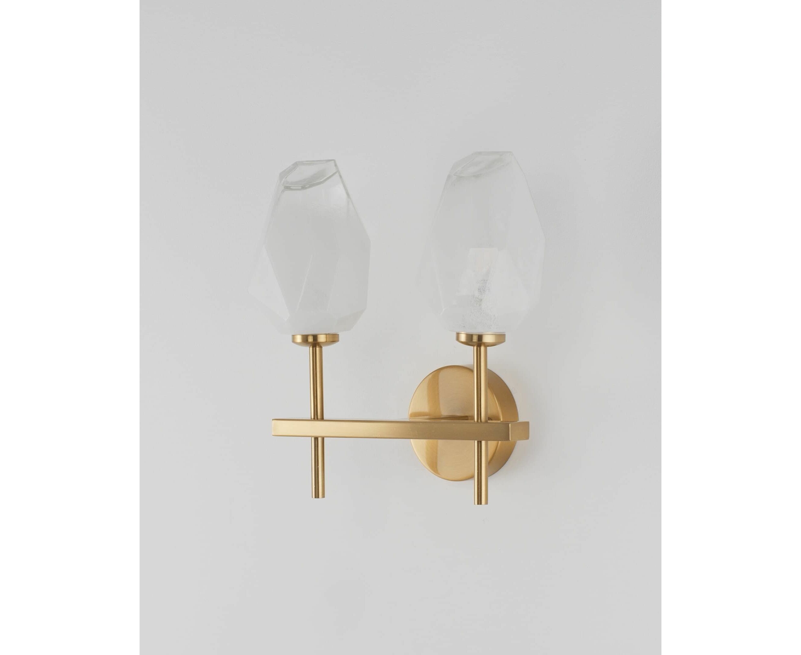 Оригинальное настенное бра из коллекции Catris. Необычные стеклянные плафоны в форме кристалла помогут создать мягкое и рассеянное освещение в комнате. В качестве источника света подойдут лампы с цоколем G9. Металлический каркас латунного цвета дополняет дизайн бра и надежно крепится к стене с помощью планки. Эффектный внешний вид светильника дополнит любой интерьер спальни, зала или гостиной.