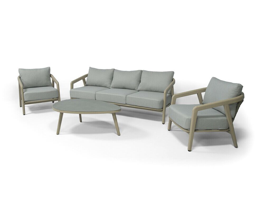 "Брюссель" лаунж-зона из искусственного ротанга, цвет серый, каркас под дерево (холодно-бежевый)