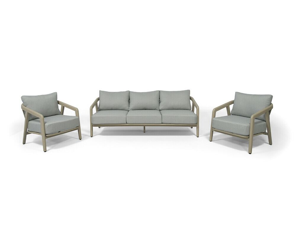 Прочный, но легкий алюминиевый каркас, стилизованный под холодное бежевое дерево - гарантирует долгий срок службы и надежность. Изящная оплетка из круглого искусственного ротанга серого цвета, напоминающая натуральное плетение, дарит неповторимую текстуру и приятные тактильные ощущения, создавая атмосферу "Брюссель" диван трехместный из искусственного ротанга, цвет серый, каркас под дерево (холодно-бежевый) 1шт. 2 030Х690Х810, "Брюссель" кресло из искусстенного ротанга, цвет серый, каркас под дерево (холодно-бежевый) 2шт. 730Х690Х810,