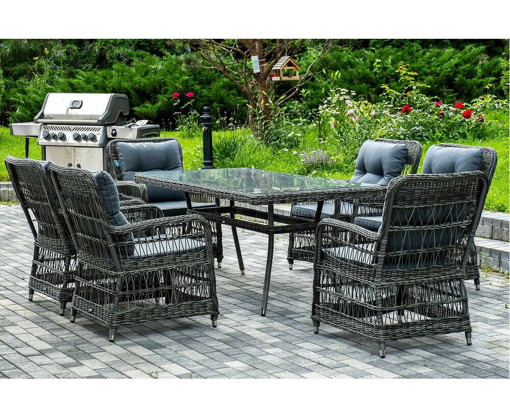 "Цесена" кресло плетеное из искусственного ротанга, цвет графит 6шт. 600Х800Х910, "Латте" плетеный стол из искусственного ротанга 160х90см, цвет графит 1шт. 1 600Х900Х750,