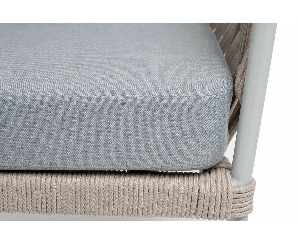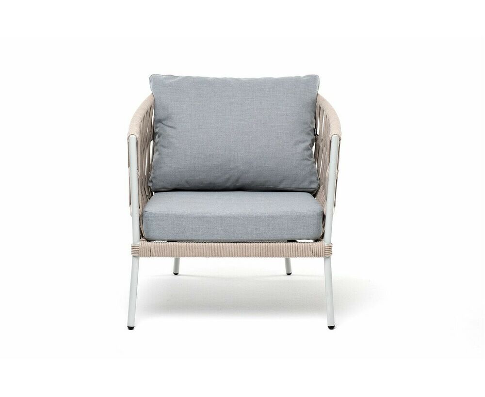 "Диего" кресло плетеное из роупа, каркас алюминий светло-серый (RAL7035) муар, роуп бежевый круглый, ткань светло-серая