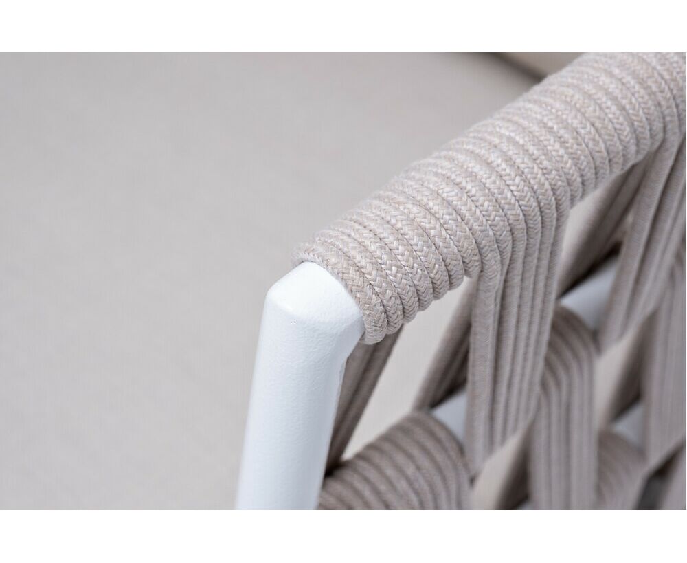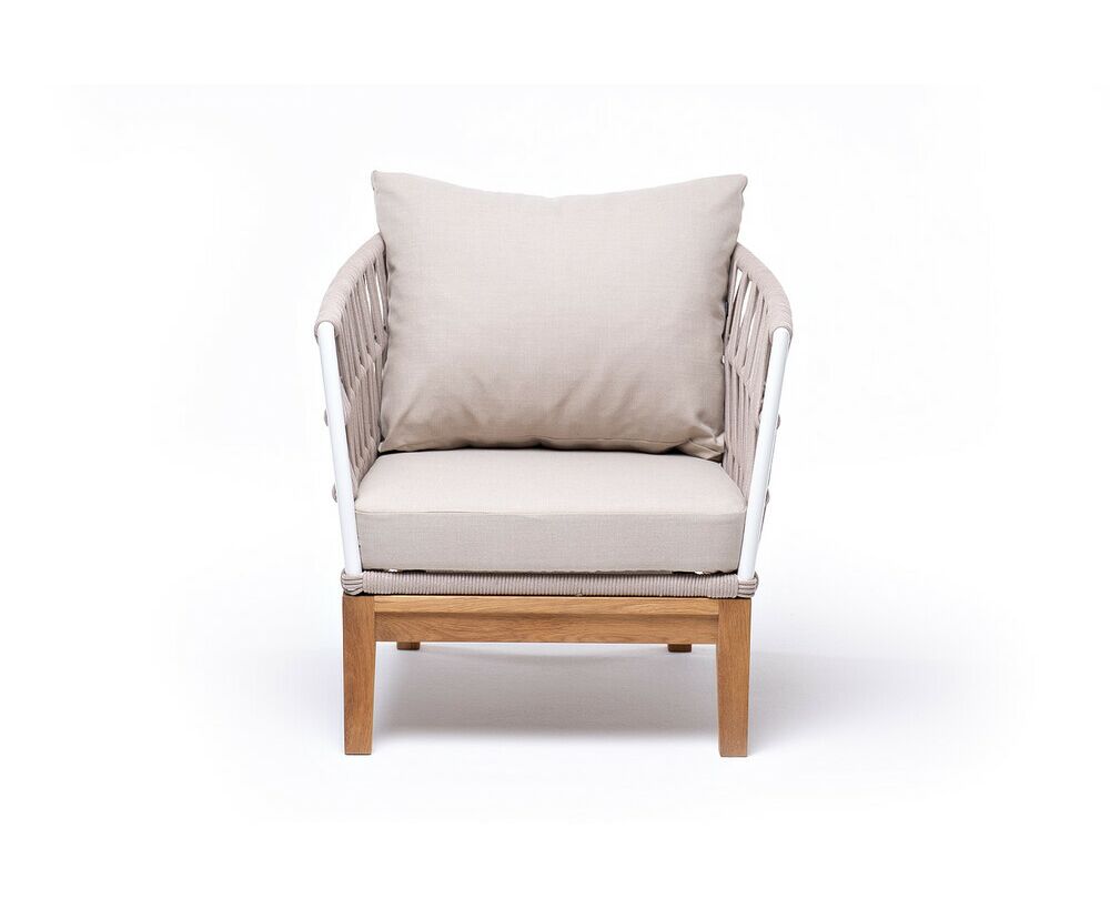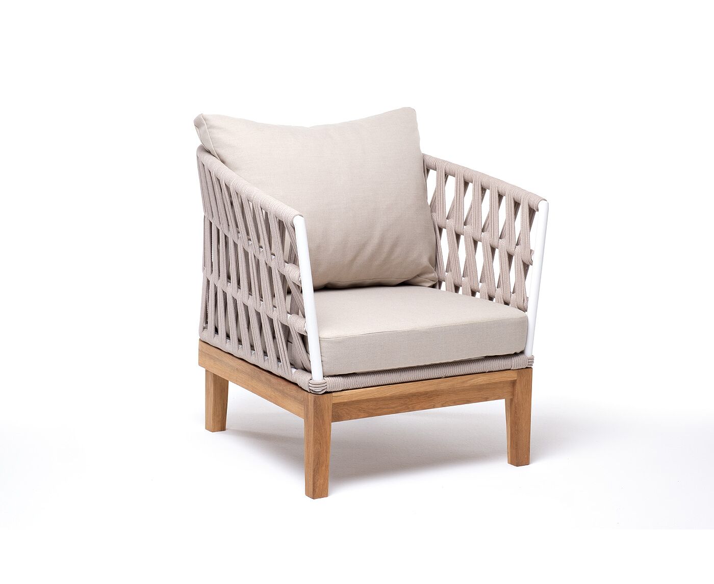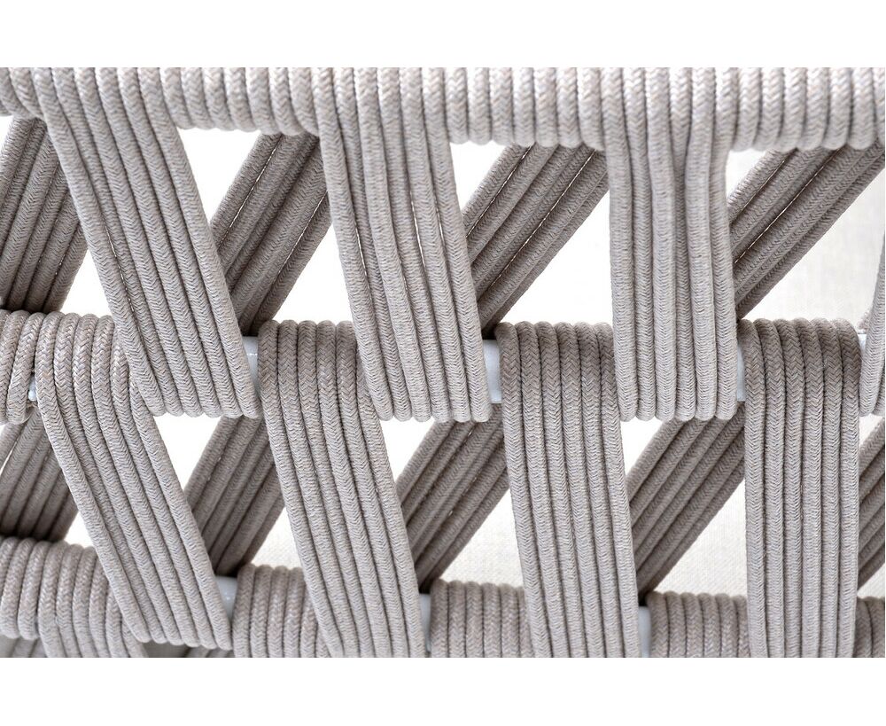 "Диего" кресло плетеное из роупа, основание дуб, каркас алюминий светло-серый (RAL7035) шагрень, роуп бежевый круглый, ткань бежевая 15052