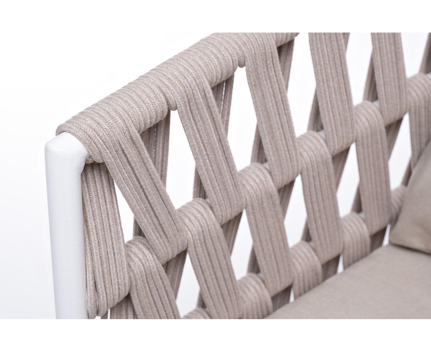 "Диего" кресло плетеное из роупа, основание дуб, каркас алюминий светло-серый (RAL7035) шагрень, роуп бежевый круглый, ткань бежевая 15052