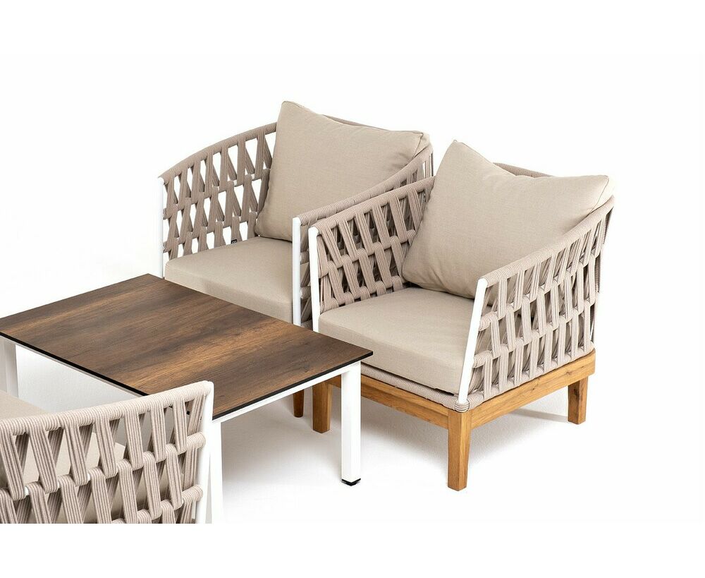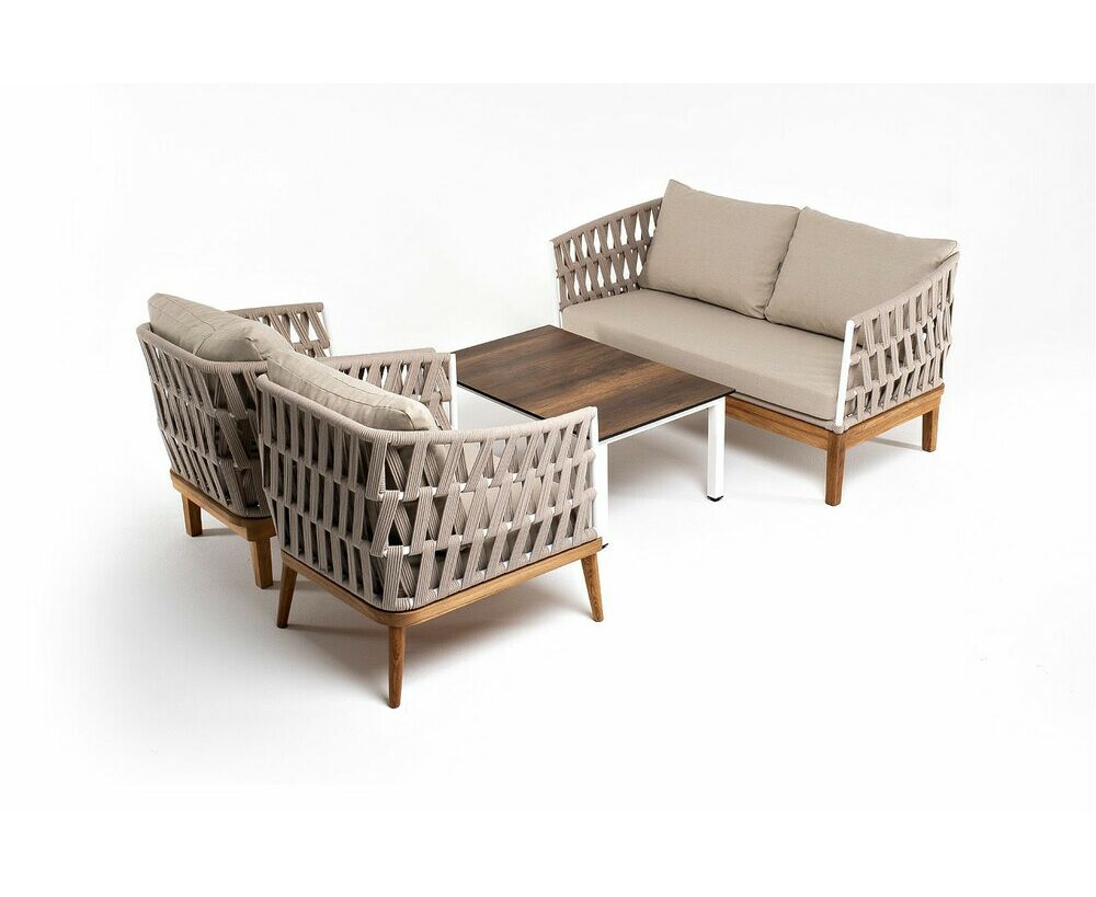 "Диего" лаунж-зона 4-местная плетеная из роупа со столиком "Канны" цвета "дуб", основание дуб, роуп бежевый