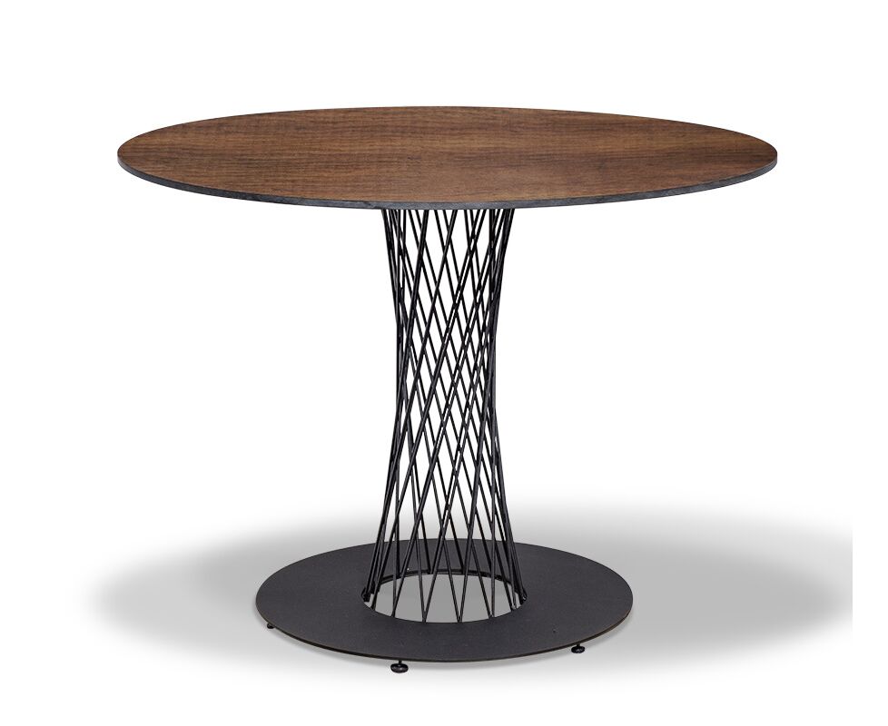 Круглый обеденный стол «Диего» с подстольем, произведенным посредством вертикального плетения из надежных металлических прутьев, выкрашенных в черный цвет.