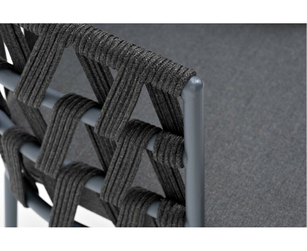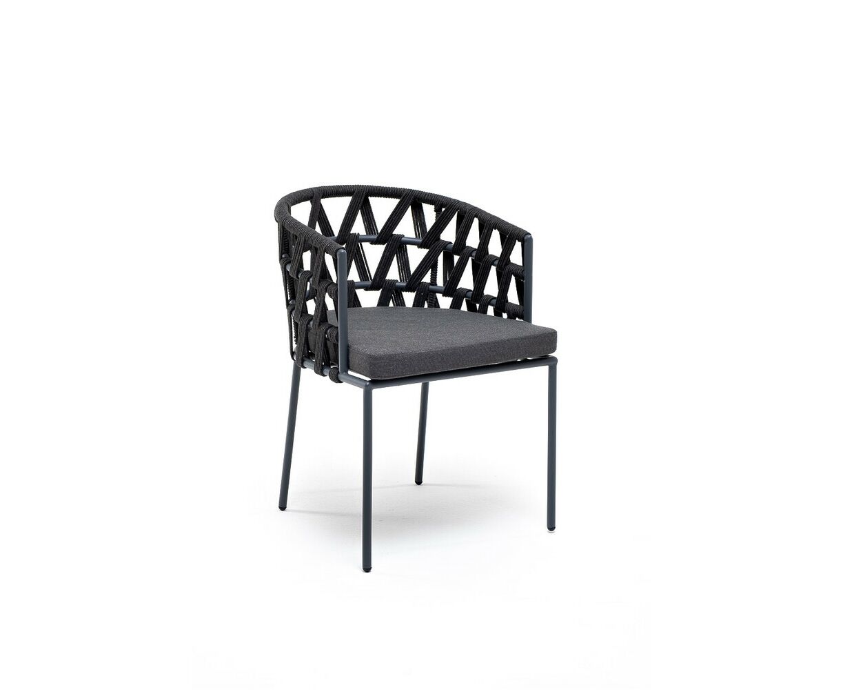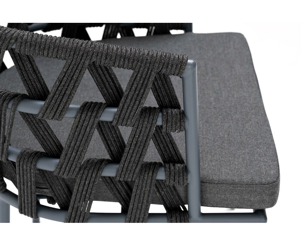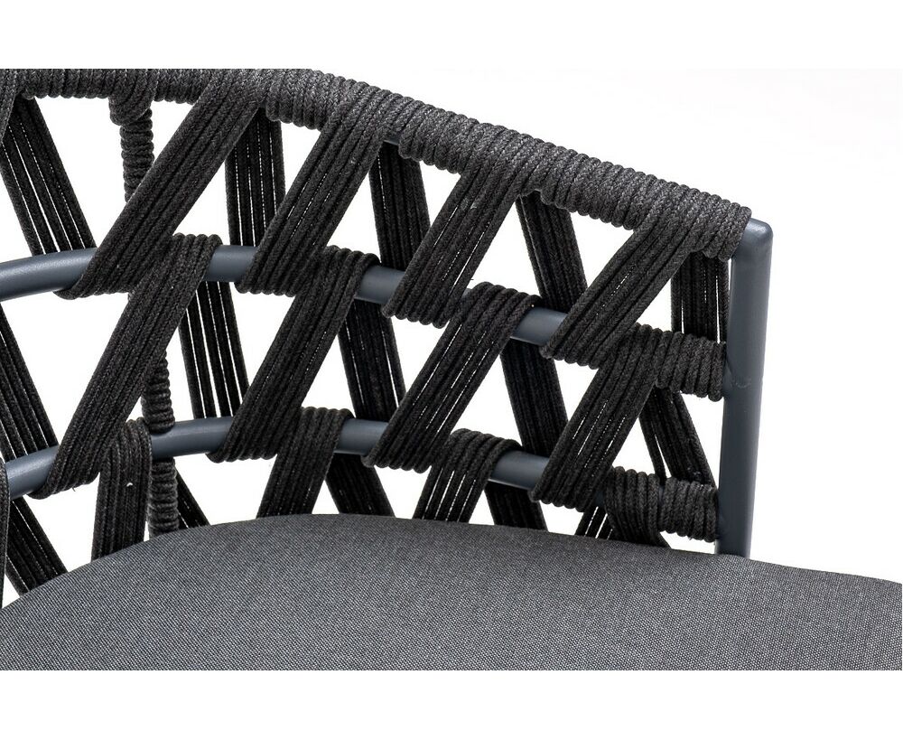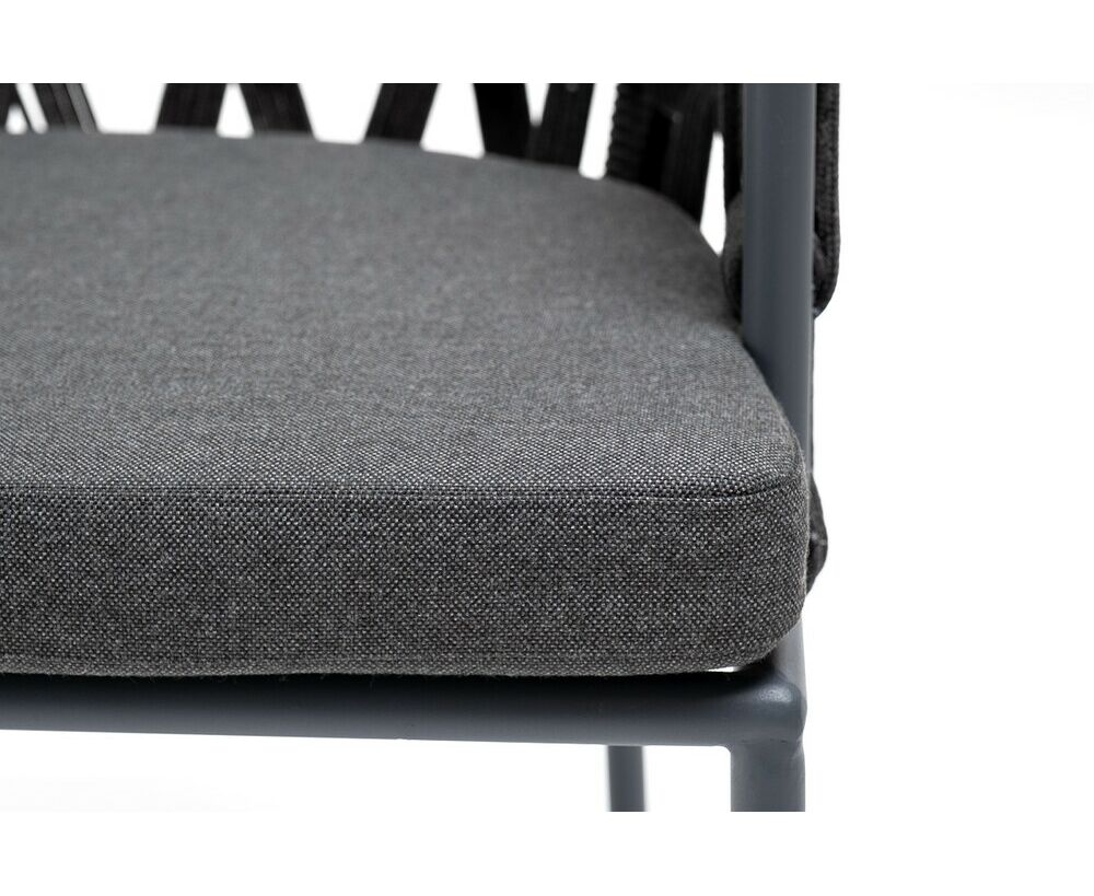 "Диего" стул плетеный из роупа, каркас из стали темно-серый (RAL7024) муар, роуп темно-серый круглый, ткань темно-серая 027