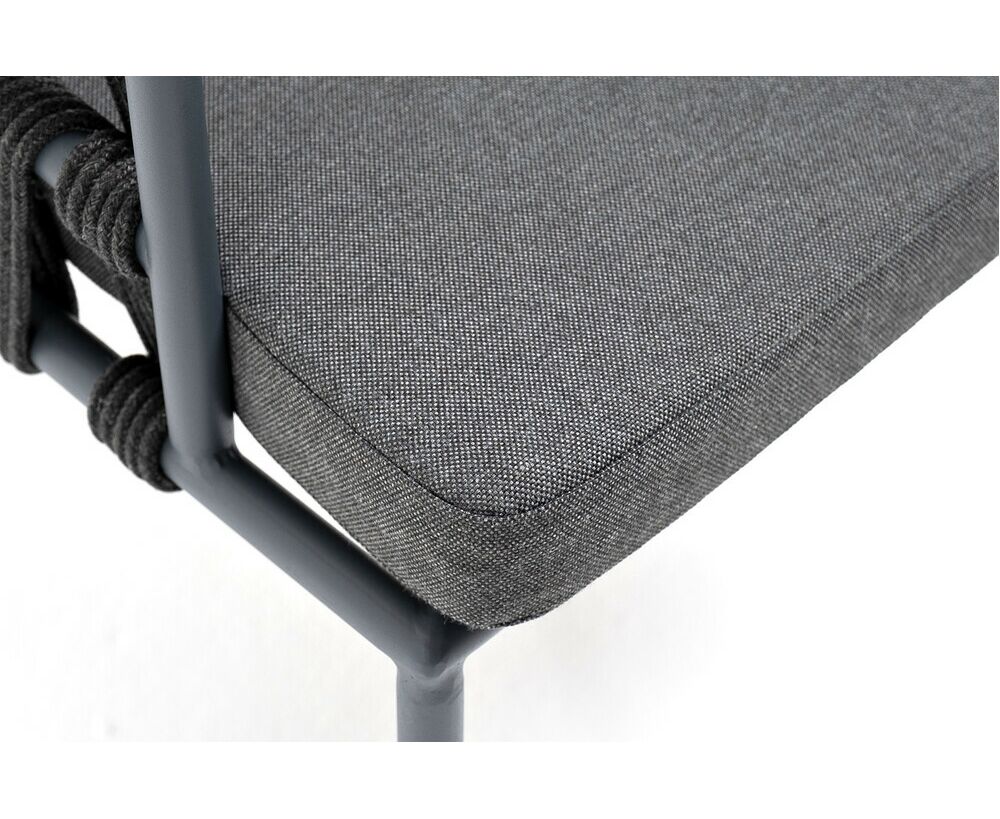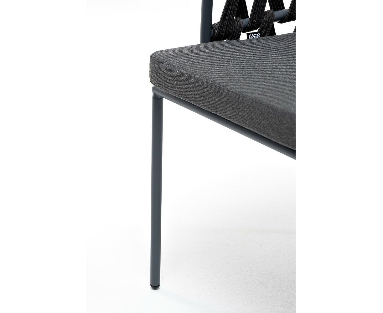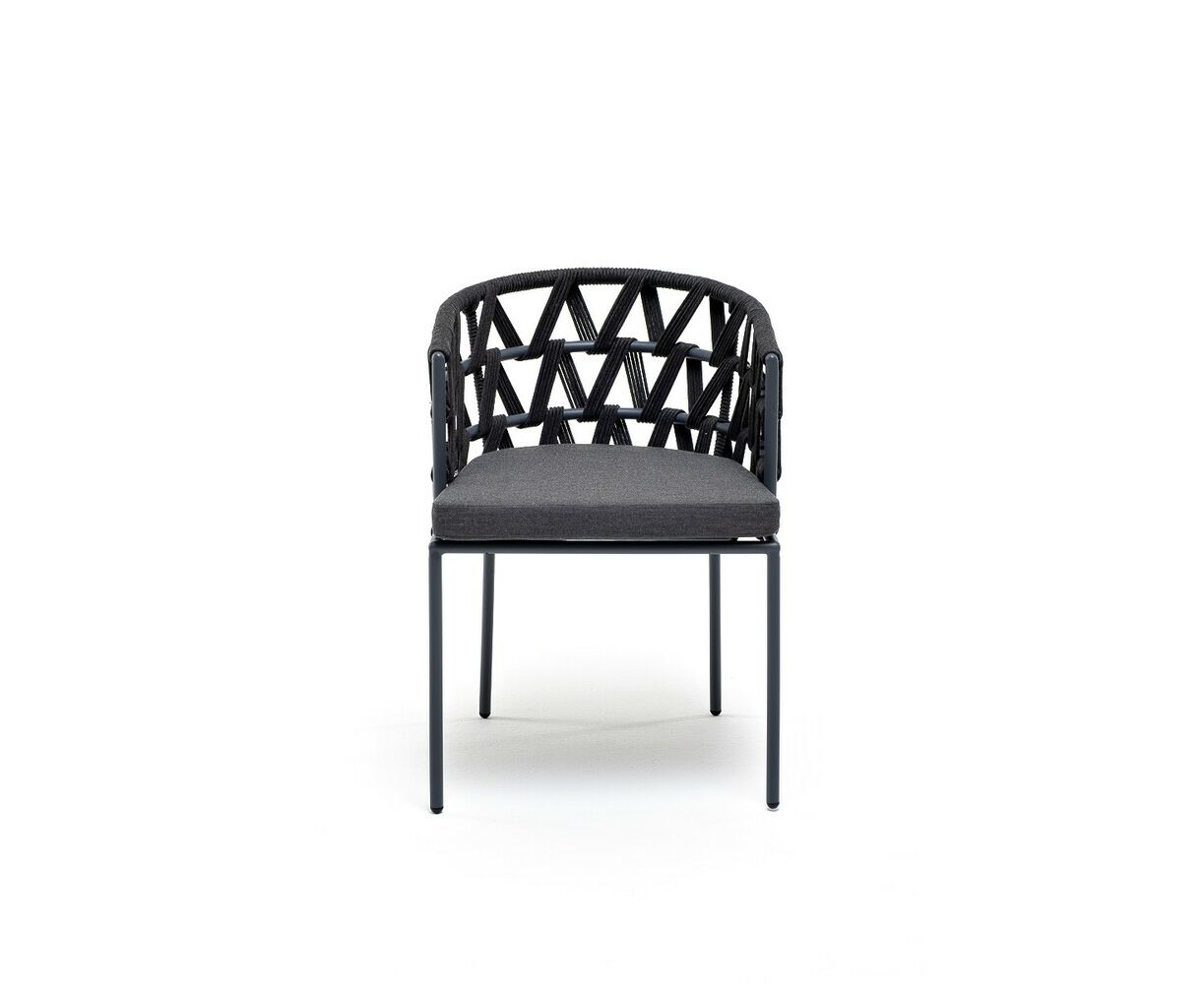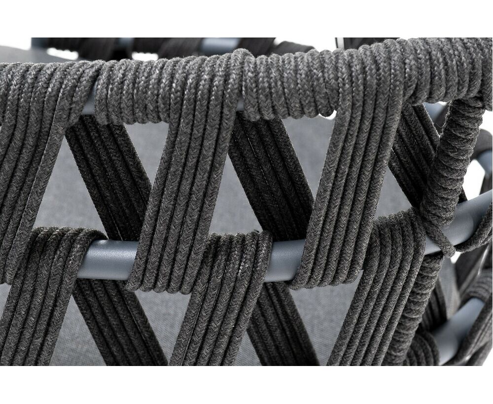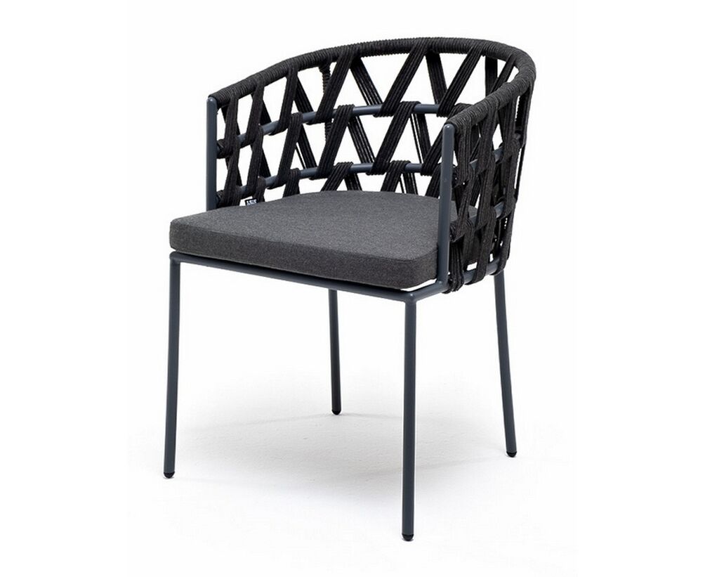 "Диего" стул плетеный из роупа, каркас из стали темно-серый (RAL7024) муар, роуп темно-серый круглый, ткань темно-серая 027