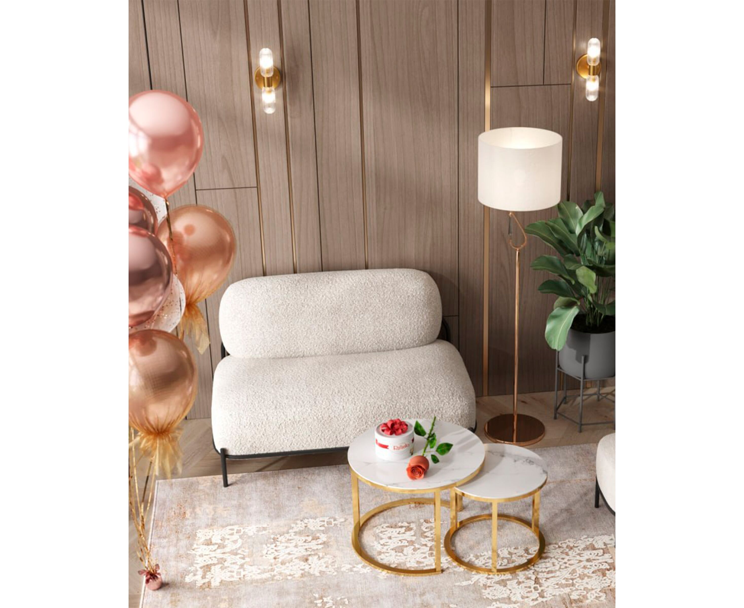 Диван Стоун new ткань букле молочный