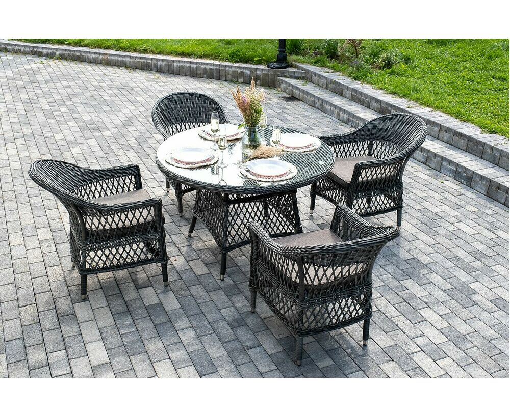 "Дольче" обеденная группа из искусственного ротанга, цвет графит