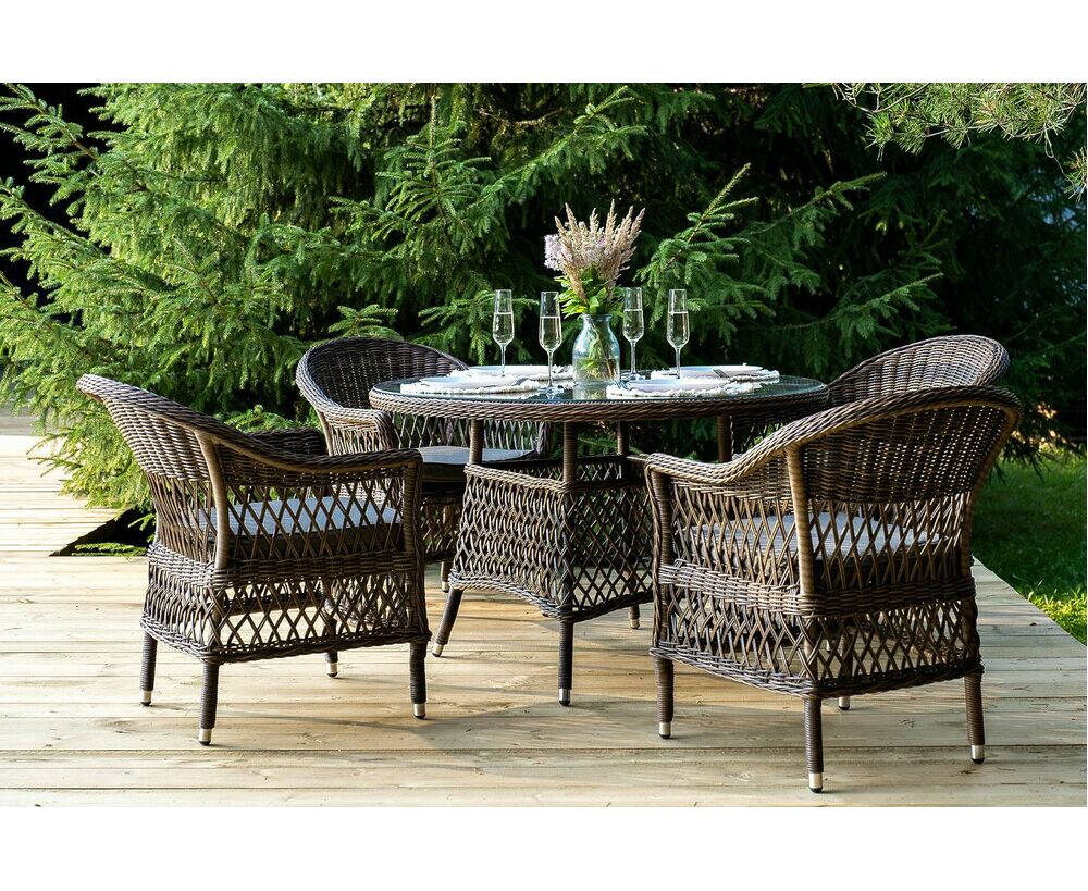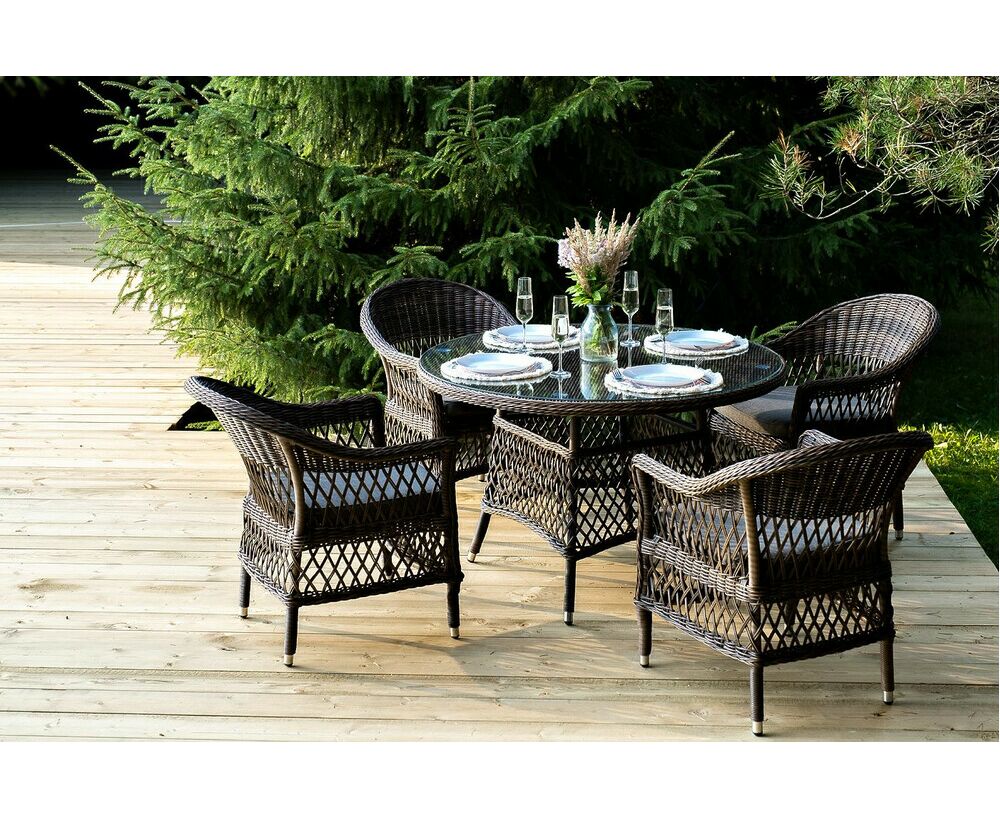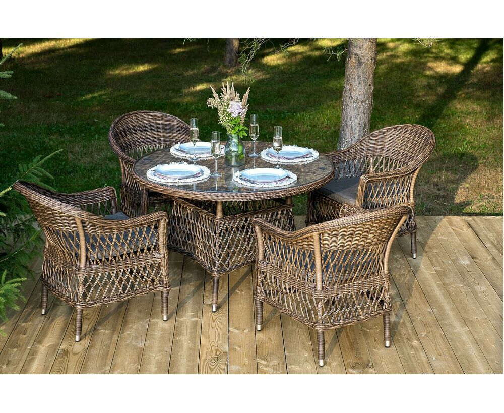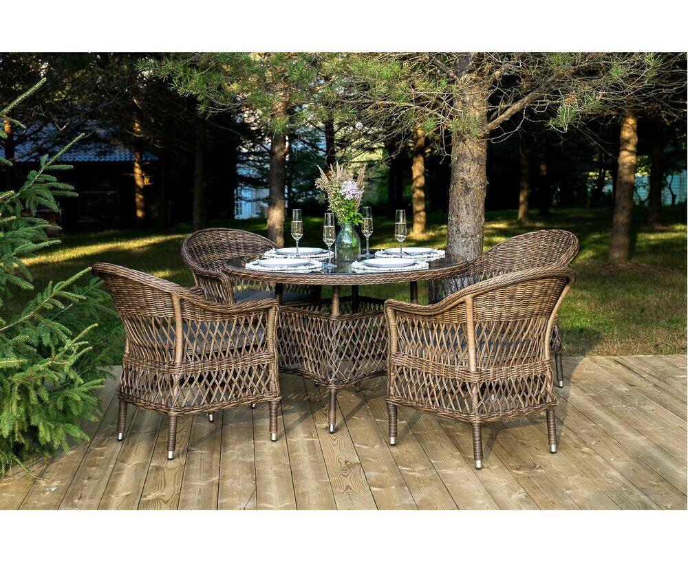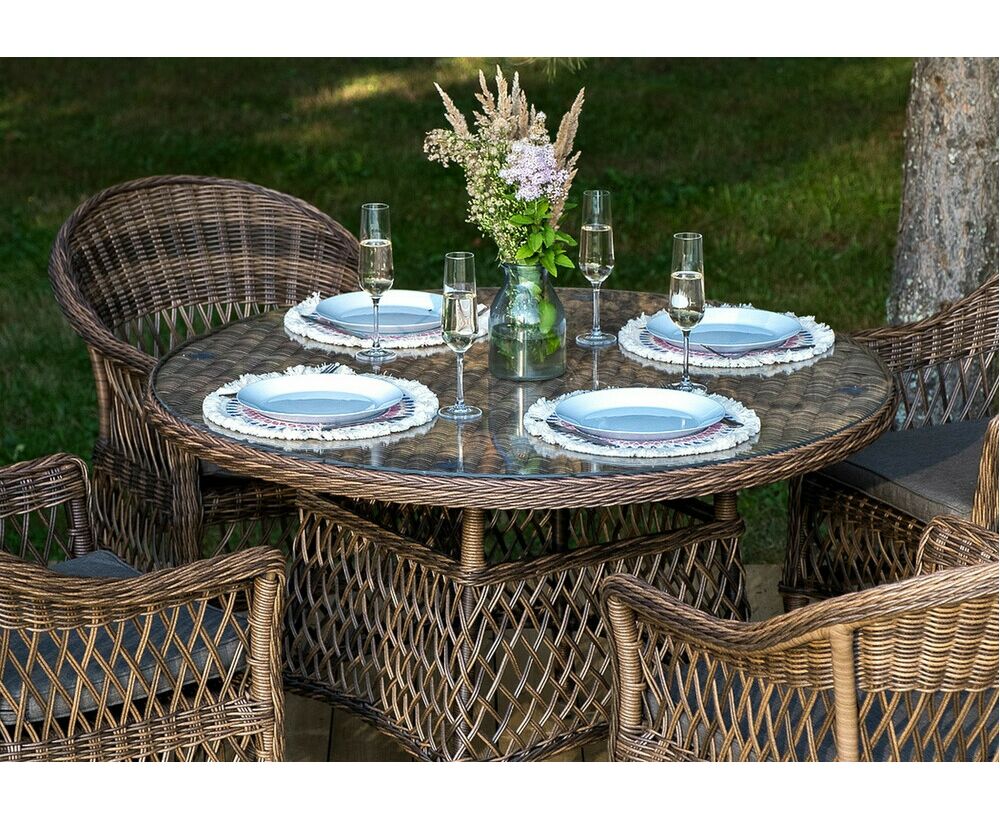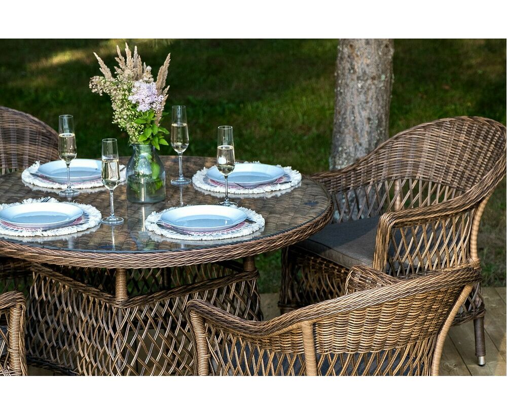Обеденная группа «Дольче» дает возможность обустроить обеденную зону на открытом дачном участке, веранде или беседке.