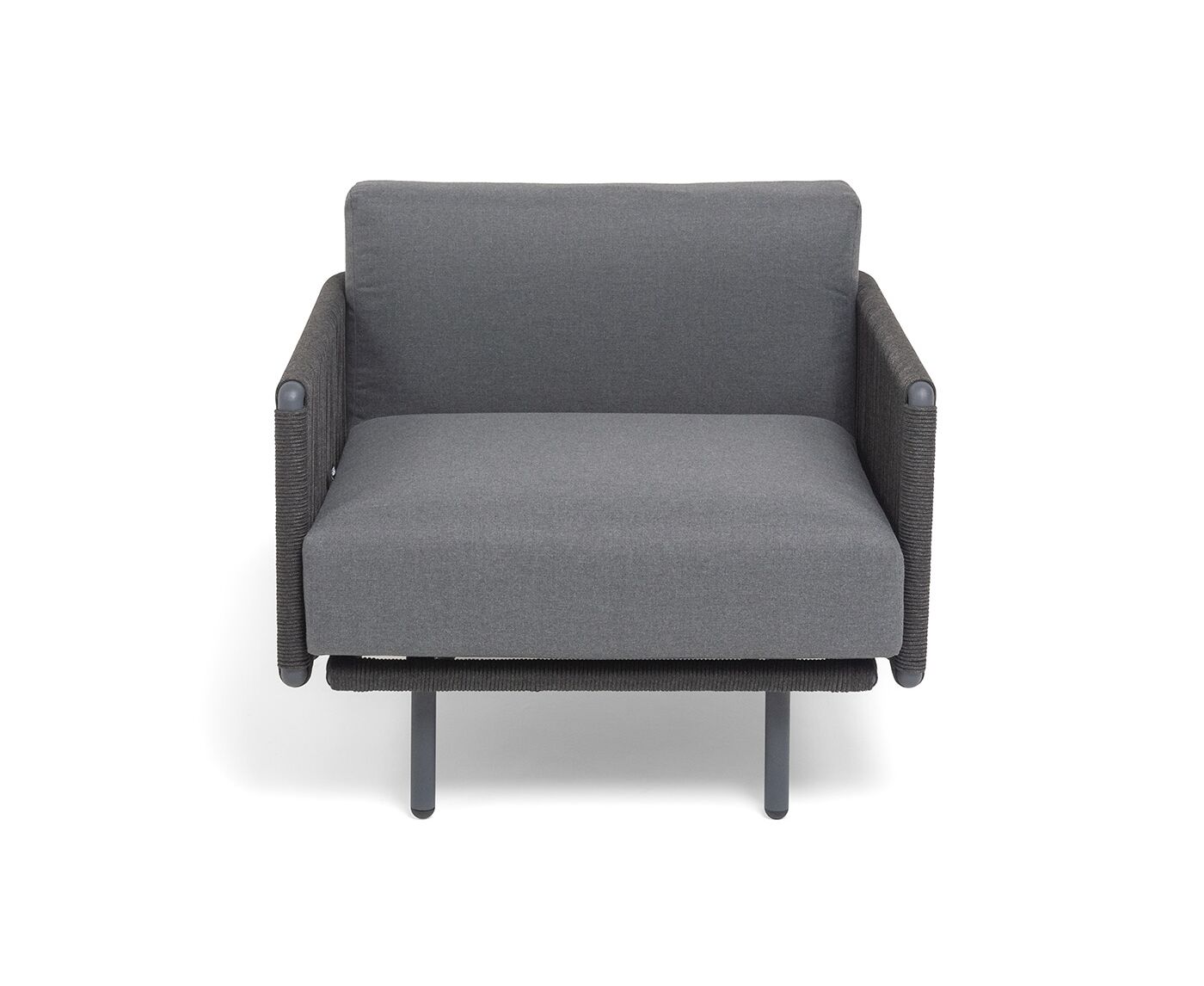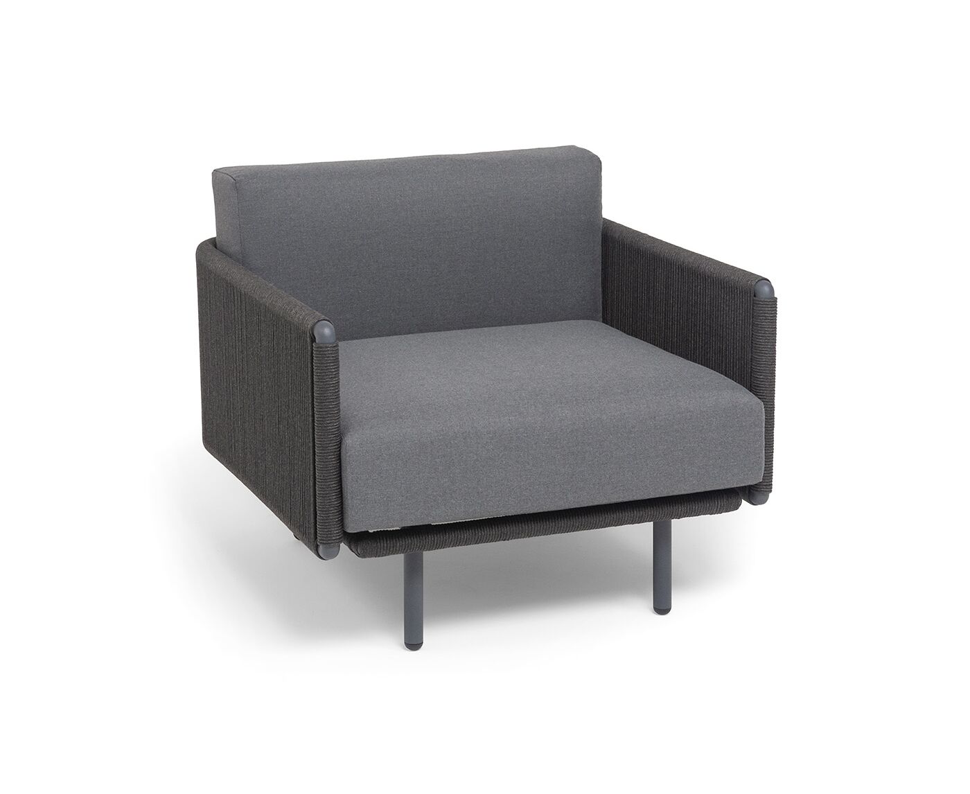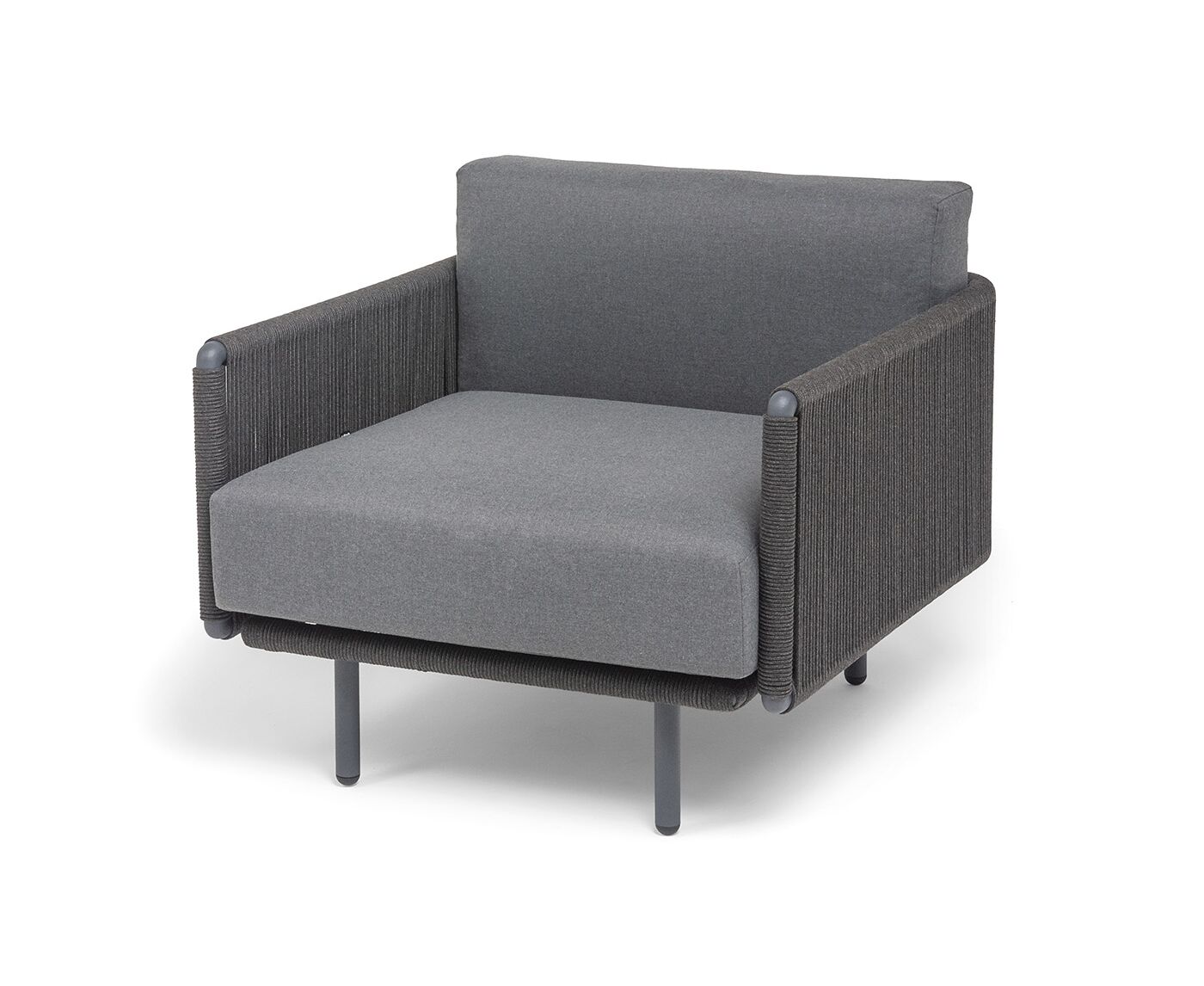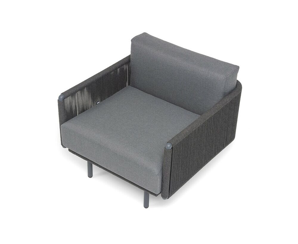 "Джелло" кресло плетеное из роупа, каркас алюминий темно-серый (RAL7024) муар, роуп темно-серый круглый, ткань темно-серая 027