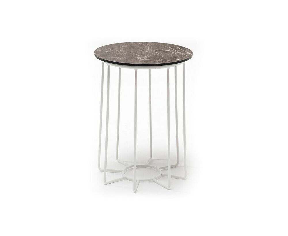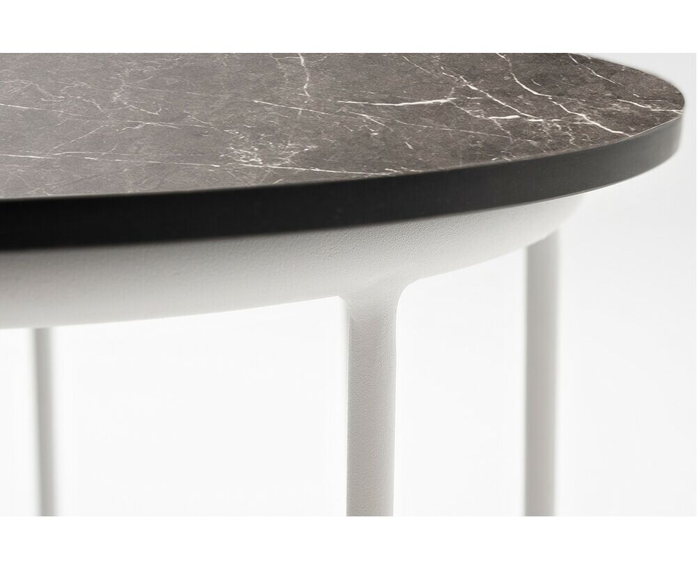 "Эквадор" журнальный стол из HPL круглый Ø40 H55, каркас из алюминия белый муар, цвет столешницы "серый мрамор"