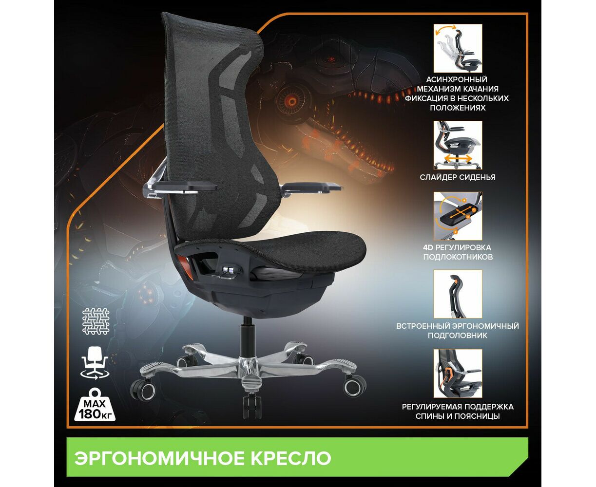 Эргономичное кресло Atom Black Сетка Черный