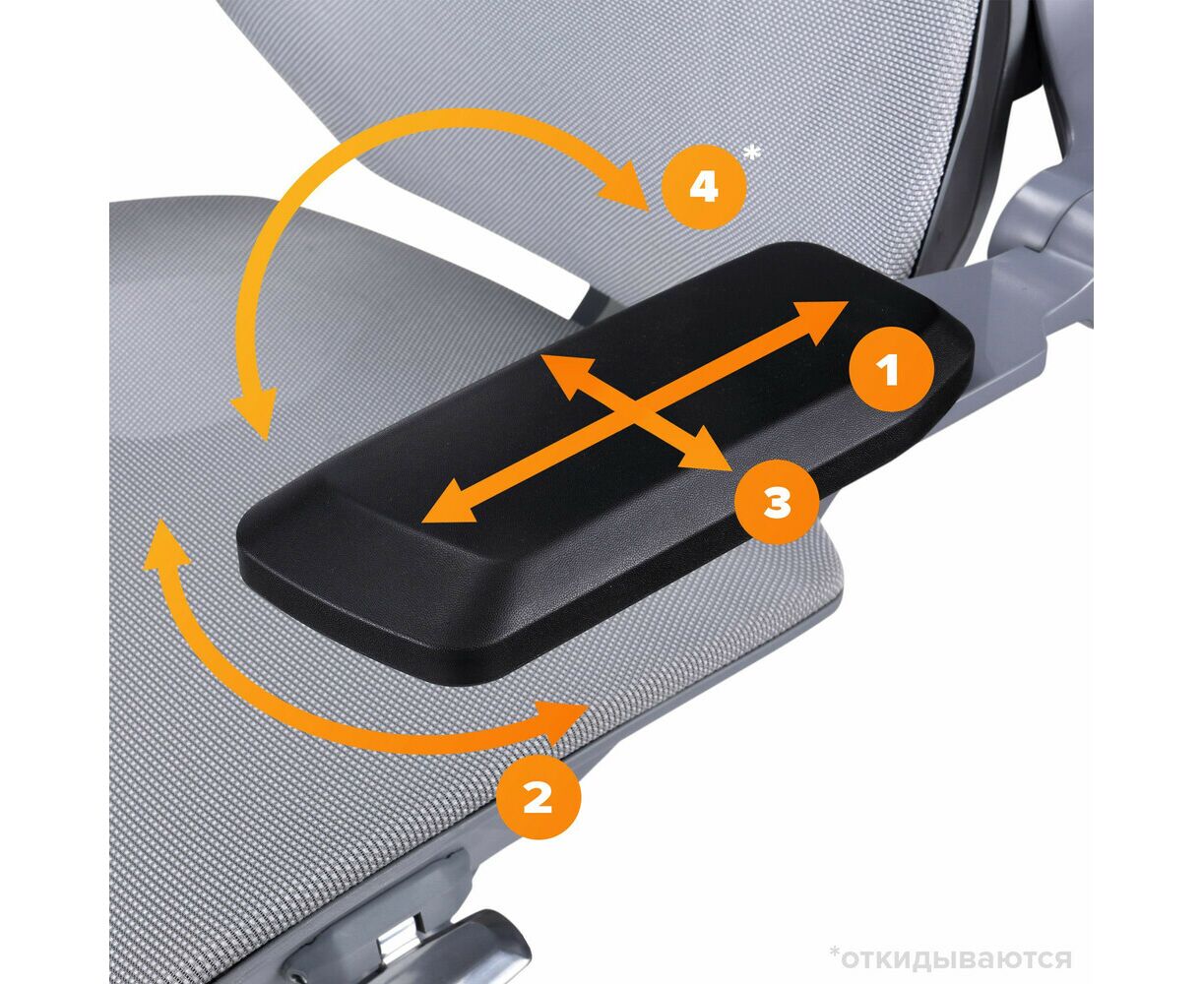 Механизм качания с асинхронным отклонением сидения и спинки в соотношении 1:3, а также фиксацией кресла в нескольких положениях. Слайдер механизм регулировки глубины сиденья
