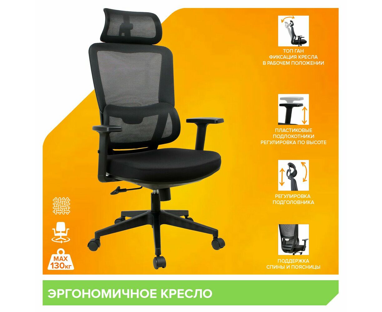 Эргономичное кресло Work Сетка Черный