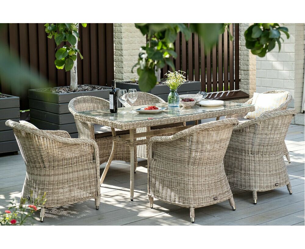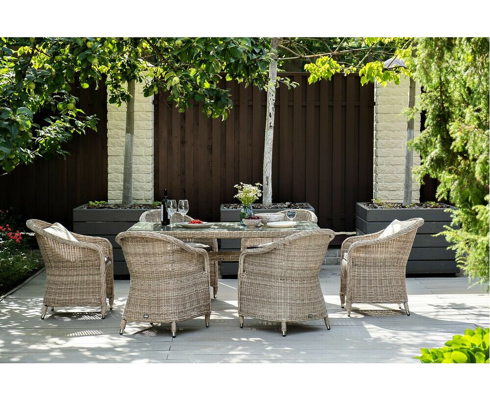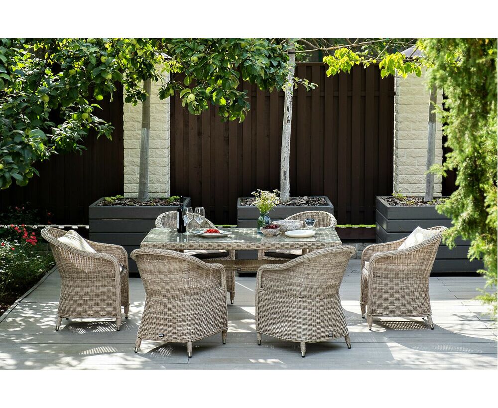 "Латте" плетеный стол из искусственного ротанга 160х90см, цвет бежевый 1шт. 1 600Х900Х750, "Равенна" плетеное кресло из искусственного ротанга, цвет бежевый 6шт. 570Х680Х810,