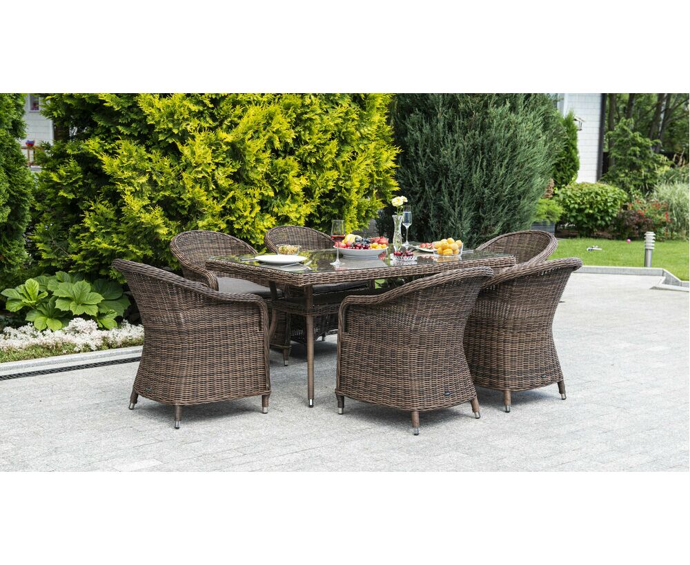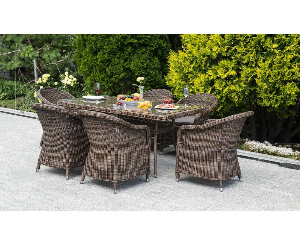"Латте" плетеный стол из искусственного ротанга 160х90см, цвет коричневый 1шт. 1 600Х900Х750, "Равенна" плетеное кресло из искусственного ротанга, цвет коричневый с серо-коричневой подушкой 6шт. 570Х680Х810,