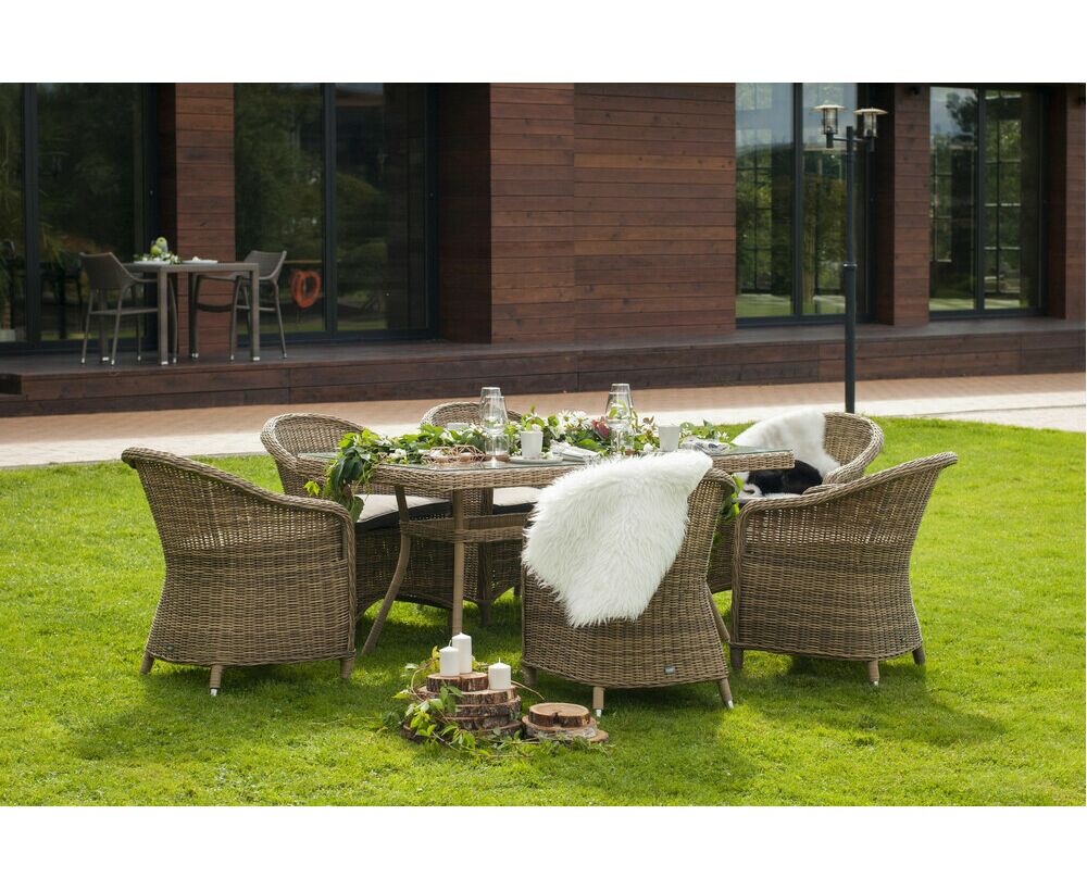 Садовая обеденная группа «Эспрессо» для шестерых персон натурального соломенного цвета.
