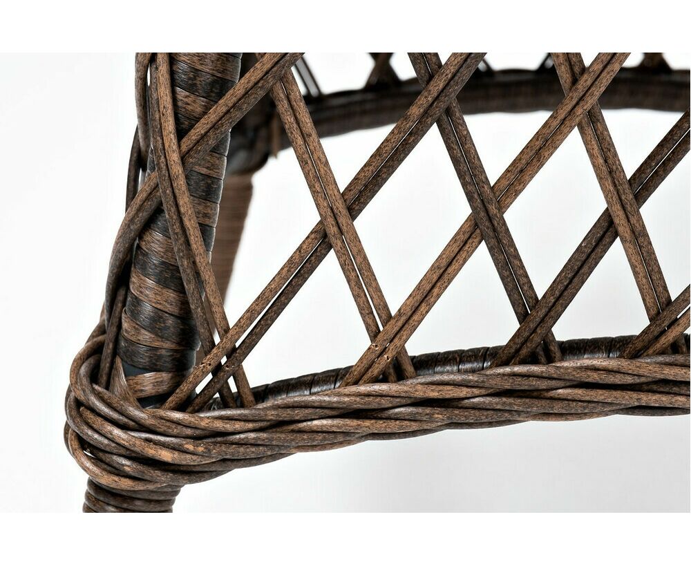 Каркас стола изготовлено из алюминия, благодаря чему его легко перемещать. Металл оплетен синтетическим ротангом круглого ручного плетения насыщенного шоколадного оттенка. Столешница – стекло, устойчивое к механическим повреждениям и высоким температурам.