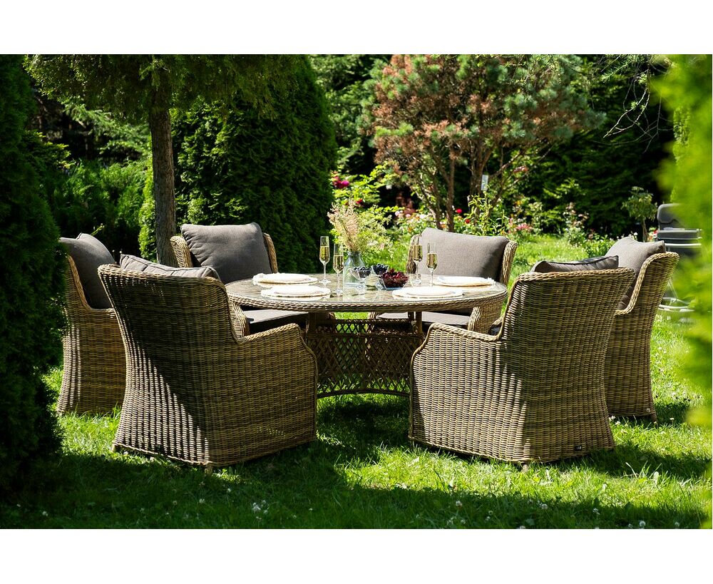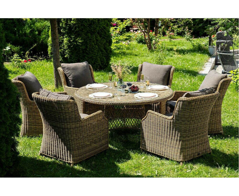 Обеденная группа на 6 персон «Эспрессо» из ротанга. В комплекте: большой круглый обеденный стол (1500×1500×750 мм.) и 6 кресел (650×900×920 мм).