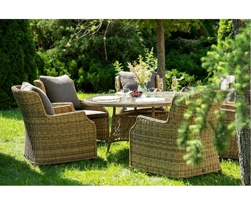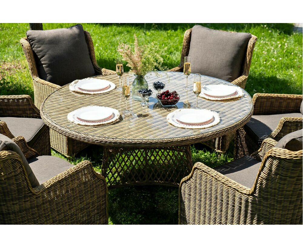 "Неаполь" плетеный стул из искусственного ротанга, цвет соломенный 6шт. 650Х900Х920, "Эспрессо" плетеный круглый стол, диаметр 150 см, цвет соломенный 1шт. 1 500Х1 500Х750,