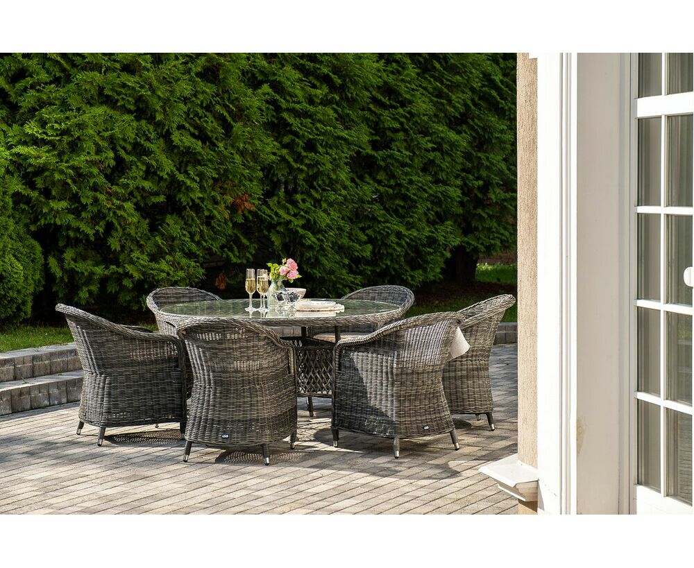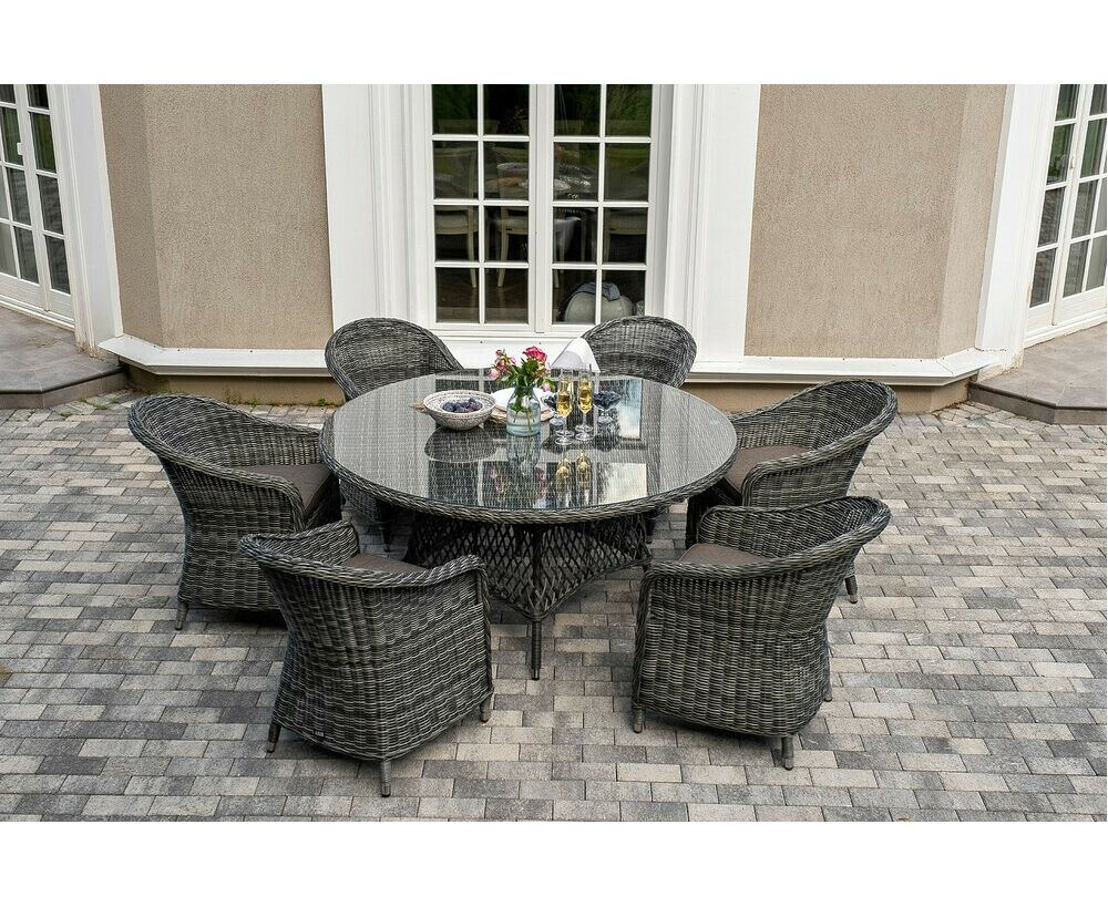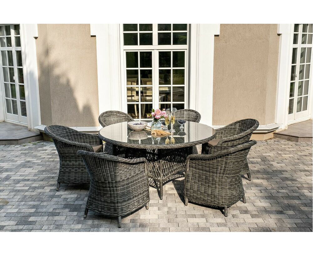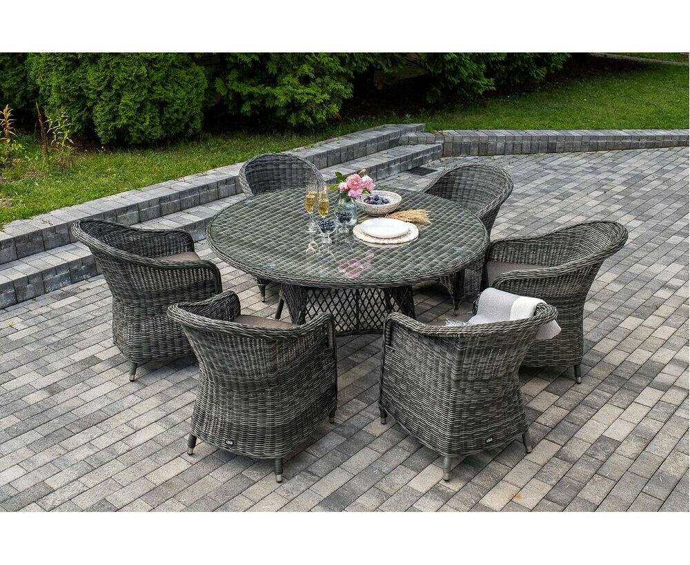 - 6 кресел коллекции «Равенна» (570×680×810 мм). "Равенна" плетеное кресло из искусственного ротанга, цвет графит 6шт. 570Х680Х810, "Эспрессо" плетеный круглый стол, диаметр 150 см, цвет графит 1шт. 1 500Х1 500Х750,