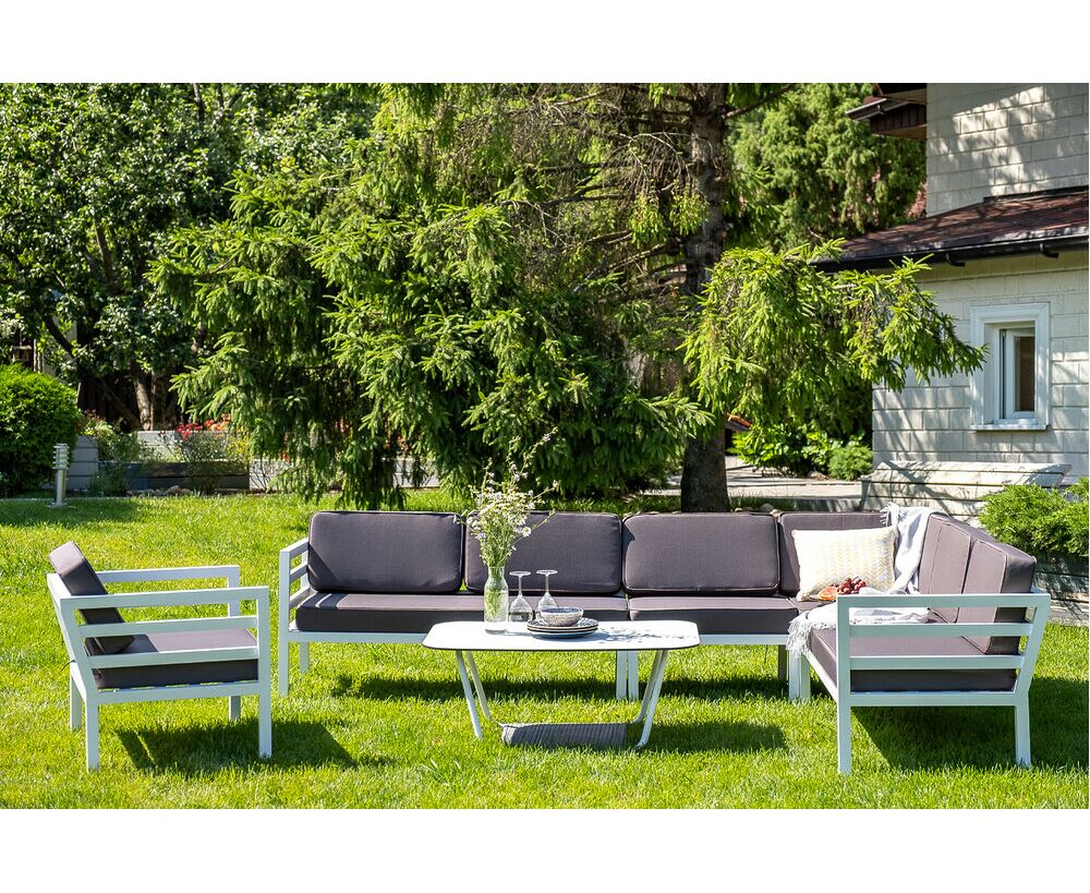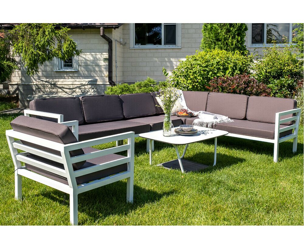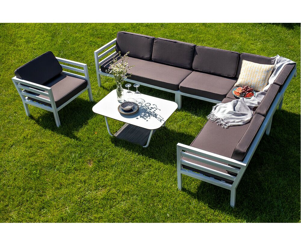 Дополнением к модулю идут подушки со съемными чехлами из полиэстера, которые обработаны влагоотталкивающей пропиткой. Чехлы можно стирать.