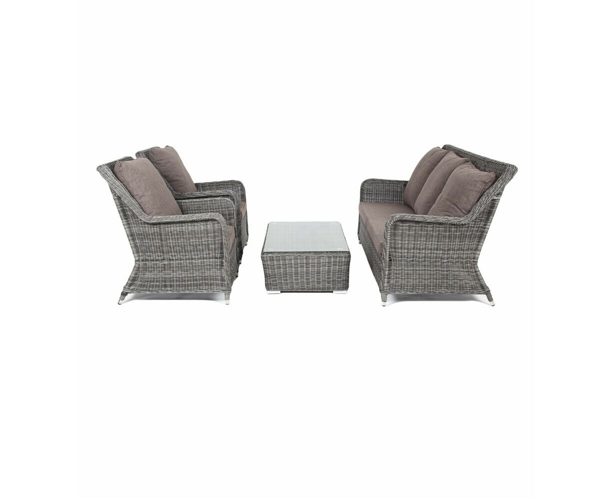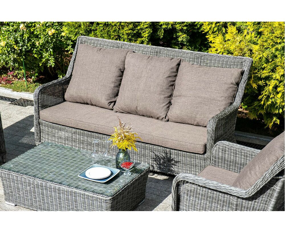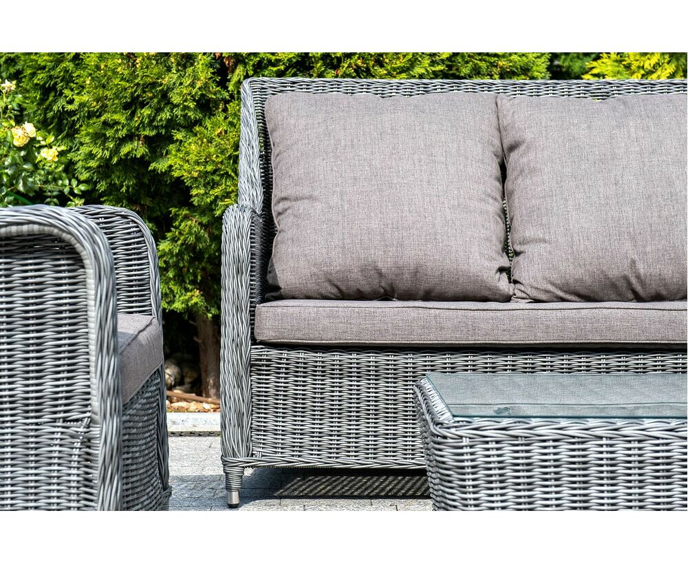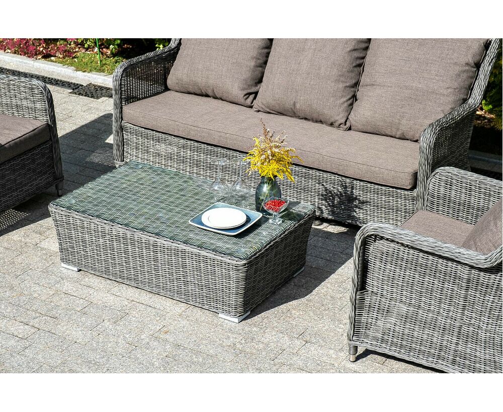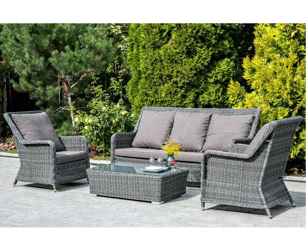 "Гляссе" диван трехместный из искусственного ротанга, цвет графит 1шт. 1 900Х880Х990, "Гляссе" кресло плетеное из искусственного ротанга, цвет графит 2шт. 730Х880Х990, "Капучино" журнальный столик из искусственного ротанга, цвет графит 1шт. 1 100Х660Х340,