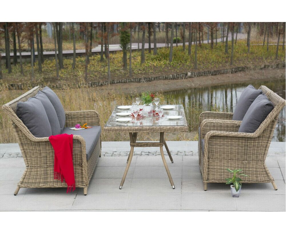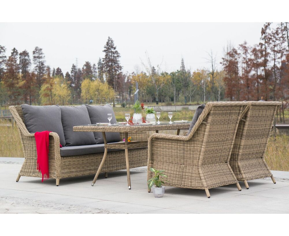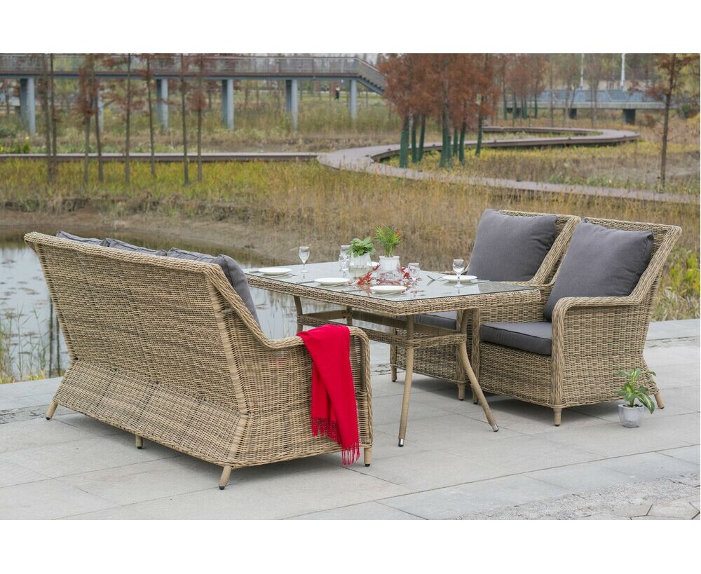 Столешница обеденного стола изготовлена из высокопрочного закаленного стекла, которое по стандартам используется в пищевой промышленности. "Гляссе" диван трехместный из искусственного ротанга, цвет соломенный 1шт. 1 900Х880Х990, "Гляссе" кресло плетеное из искусственного ротанга, цвет соломенный 2шт. 730Х880Х990, "Латте" плетеный стол из искусственного ротанга 160х90см, цвет соломенный 1шт. 1 600Х900Х750,